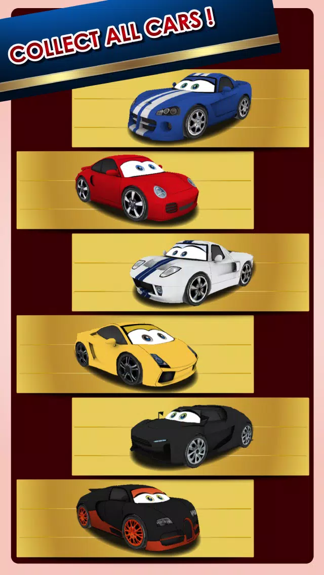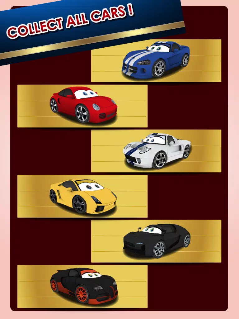 倾斜你的设备来左右操控赛车,收集金币,并尝试抓住所有赛车!