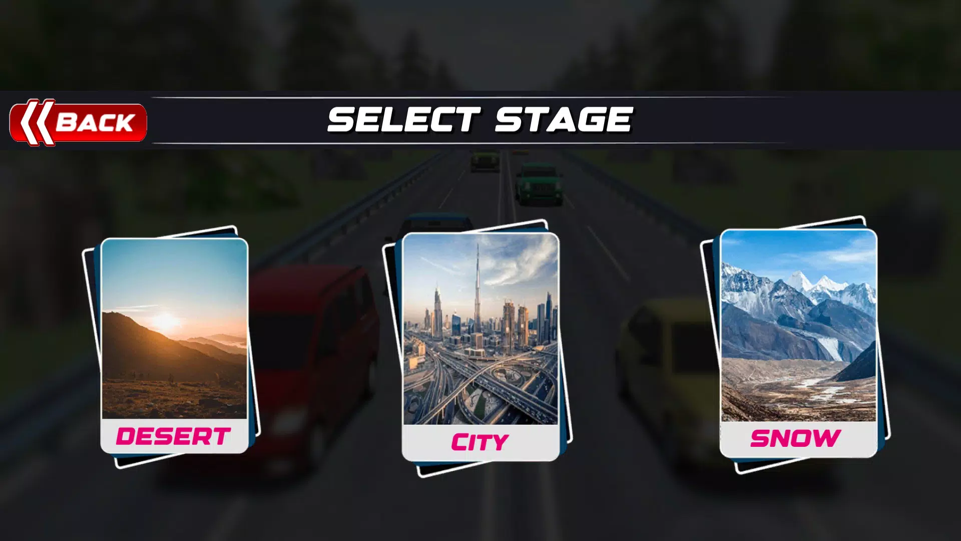 交通赛车:模拟器游戏拥有沙漠、城市、高速公路、雪地和草地等多种环境。在交通赛车游戏中,你需要避开交通碰撞,与高速车辆和对手竞争,获得积分,到达终点线并在规定时间内完成任务。分数取决于你的赛车速度。如果撞到其他车辆,游戏就会结束。这款免费的3D赛车游戏操控非常灵敏。