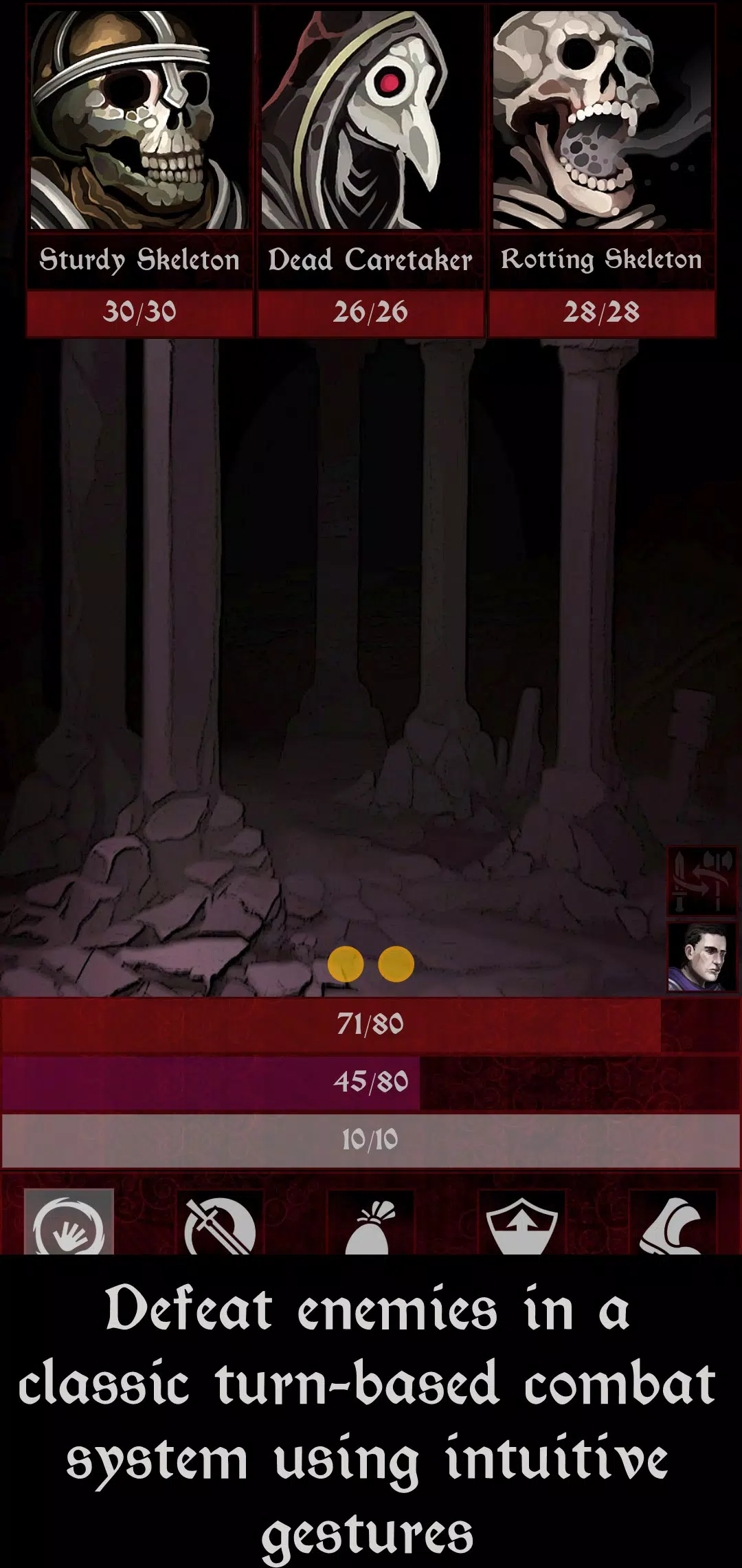 在熟悉的回合制战斗系统中,与致命的敌人和强大的首领展开激战。该系统采用直观的触屏手势操作。每一次遭遇都需要付出代价,每一个选择都至关重要。