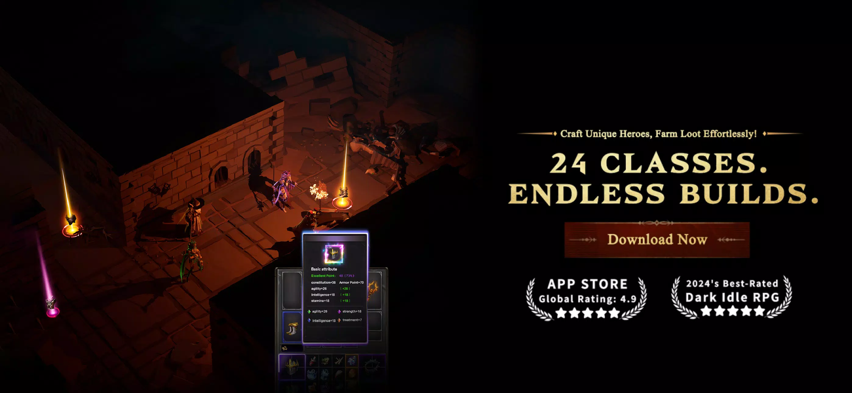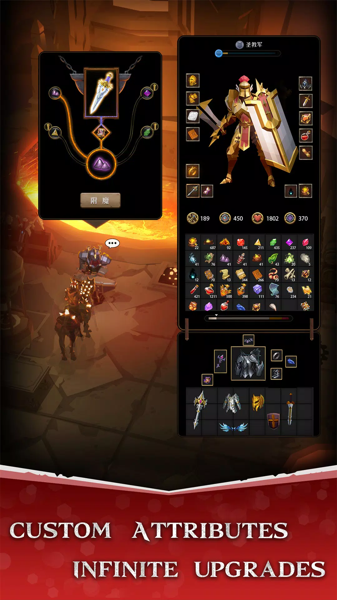 《永恒灰烬》是一款暗黑风格的团队放置类RPG游戏。你需要组建一支冒险队伍,探索广阔的大陆,参与刺激的战斗,获取战利品。