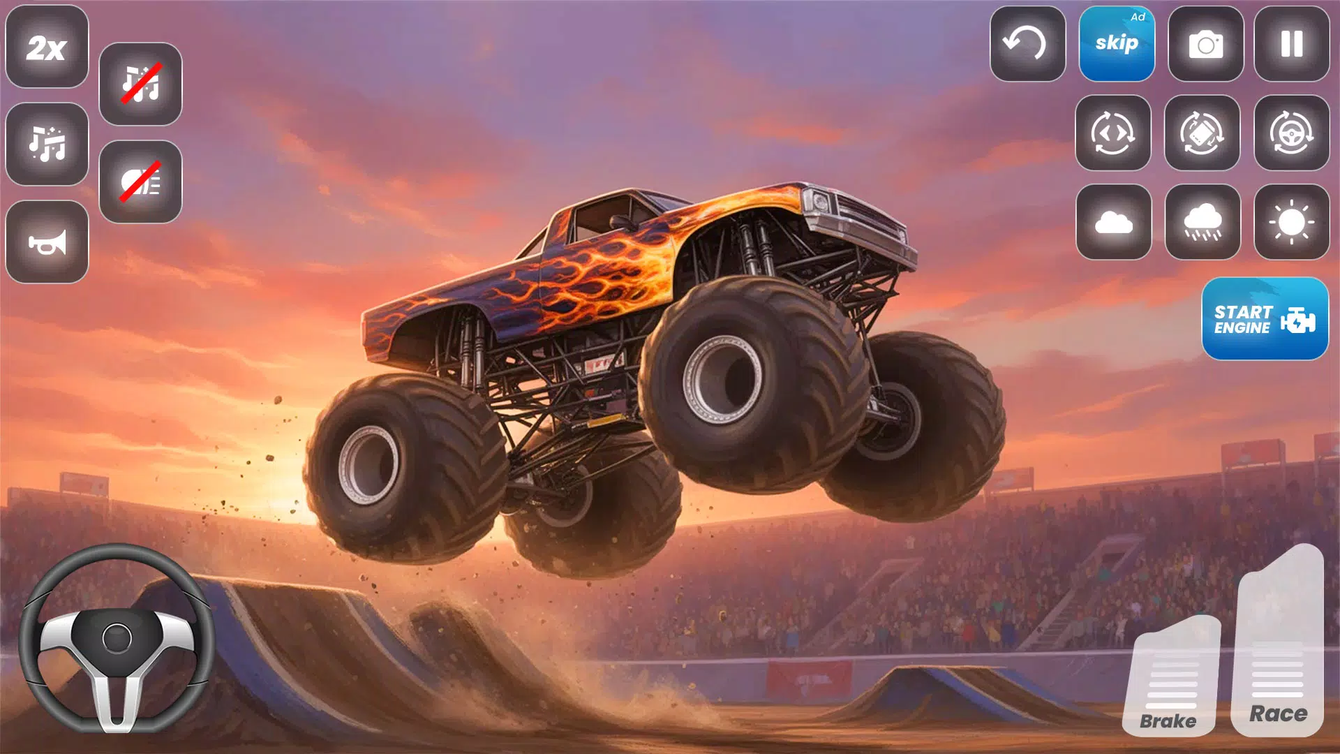 《怪物卡车 3D 离线游戏》将强劲的动作、极限特技和越野冒险完美融合,带来惊险刺激的驾驶体验。准备好操控重型怪物卡车,体验两种专为动作爱好者和冒险玩家设计的精彩游戏模式。
