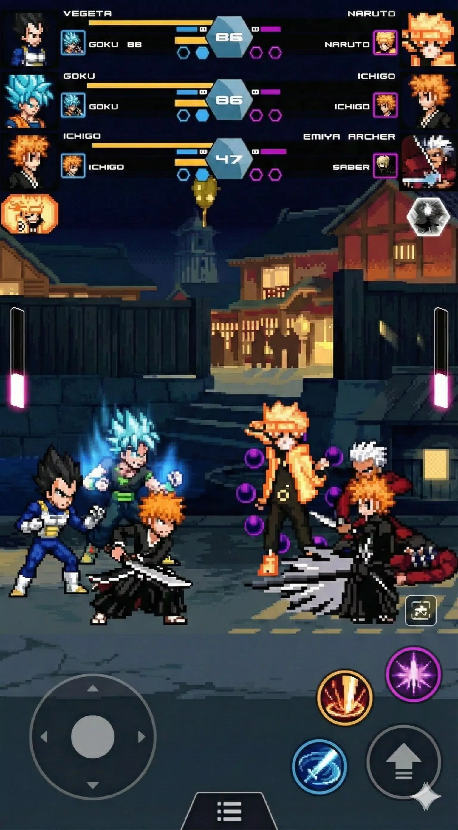 在「像素战纪/像素战记」这个像素风格的世界里,日系经典动漫角色齐聚一堂,展开一场疯狂又热血的大乱斗冒险!成为传奇英雄,或是率领你最爱的马赛克英雄小队,探索这座充满契约与觉醒力量的像素城,创造属于你的像素全明星传说。