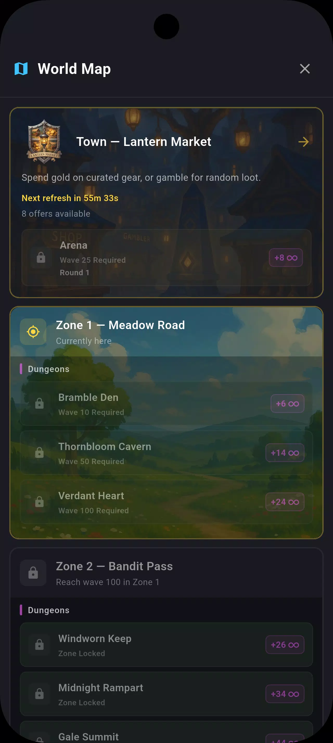 精打细算,把握时机,爆发输出,或在回合间查看进度。打造一套感觉爆棚的套装,不断升级,看看下一个英雄能走多远。