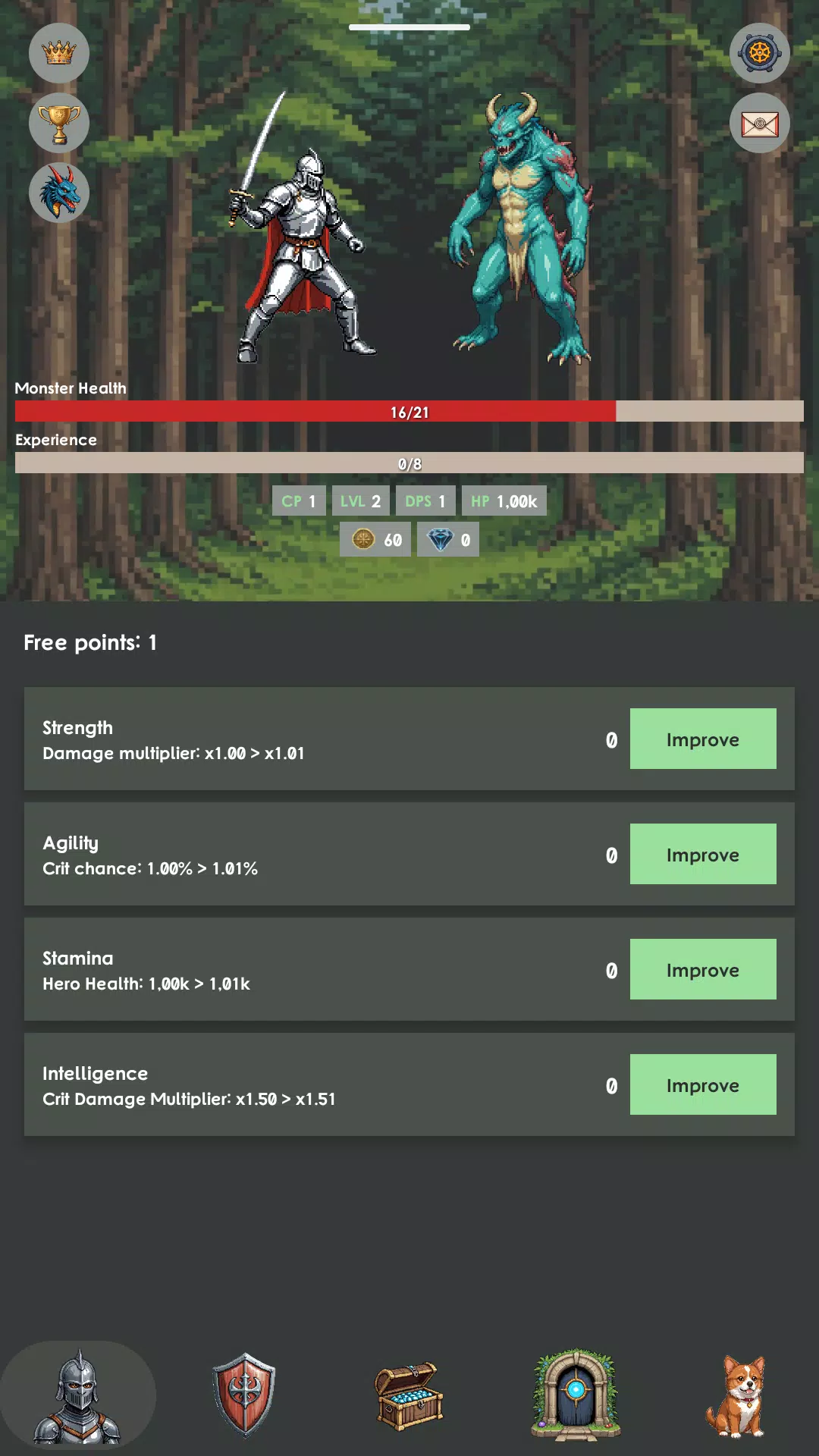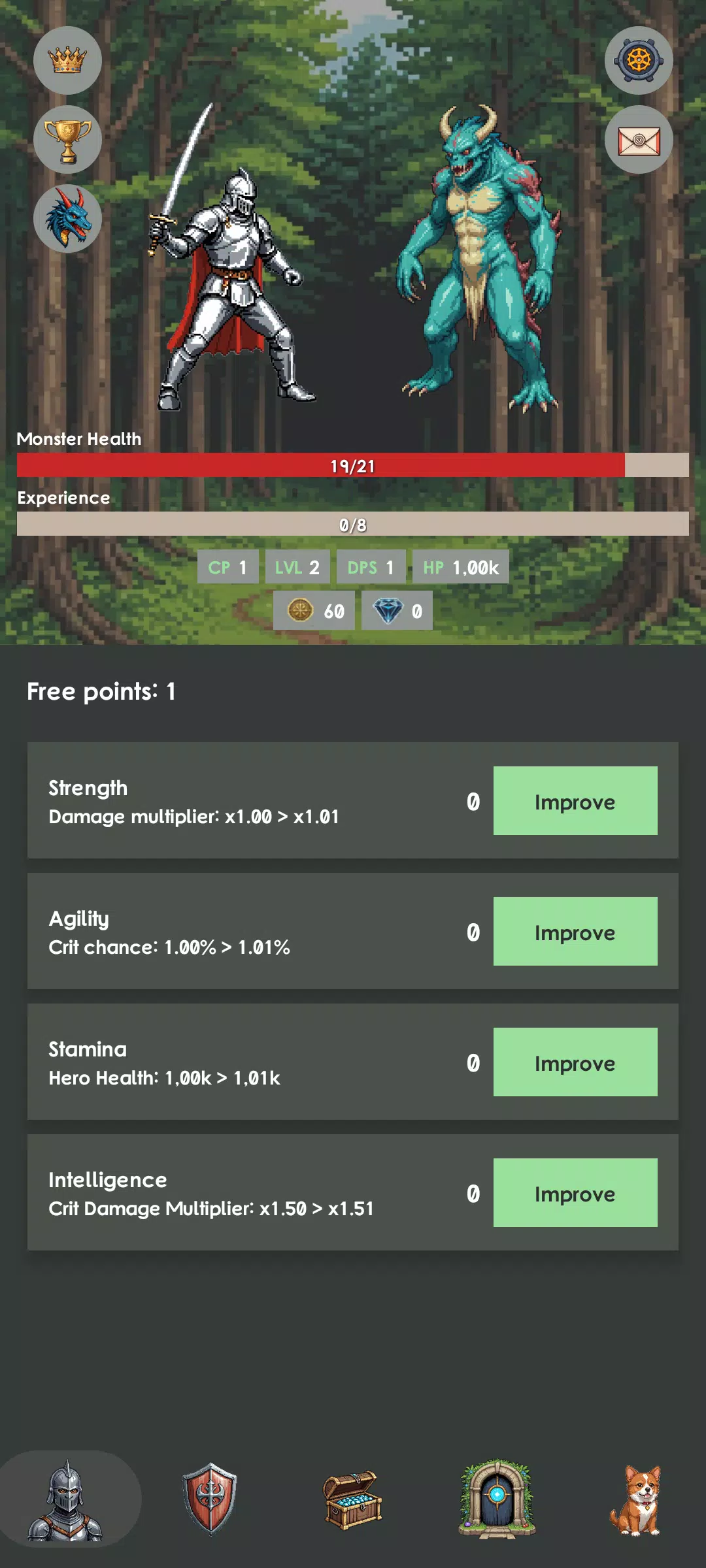• 每项属性都会影响你的战斗力:伤害、暴击率、生命值和暴击伤害