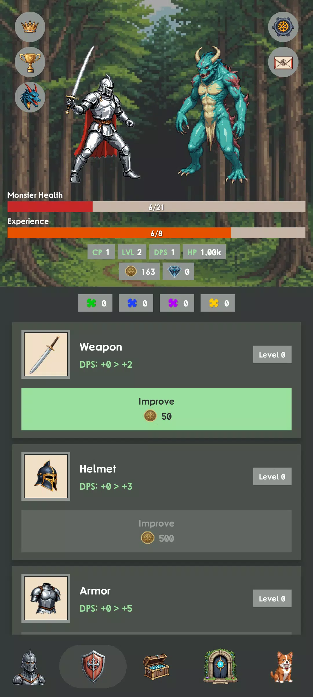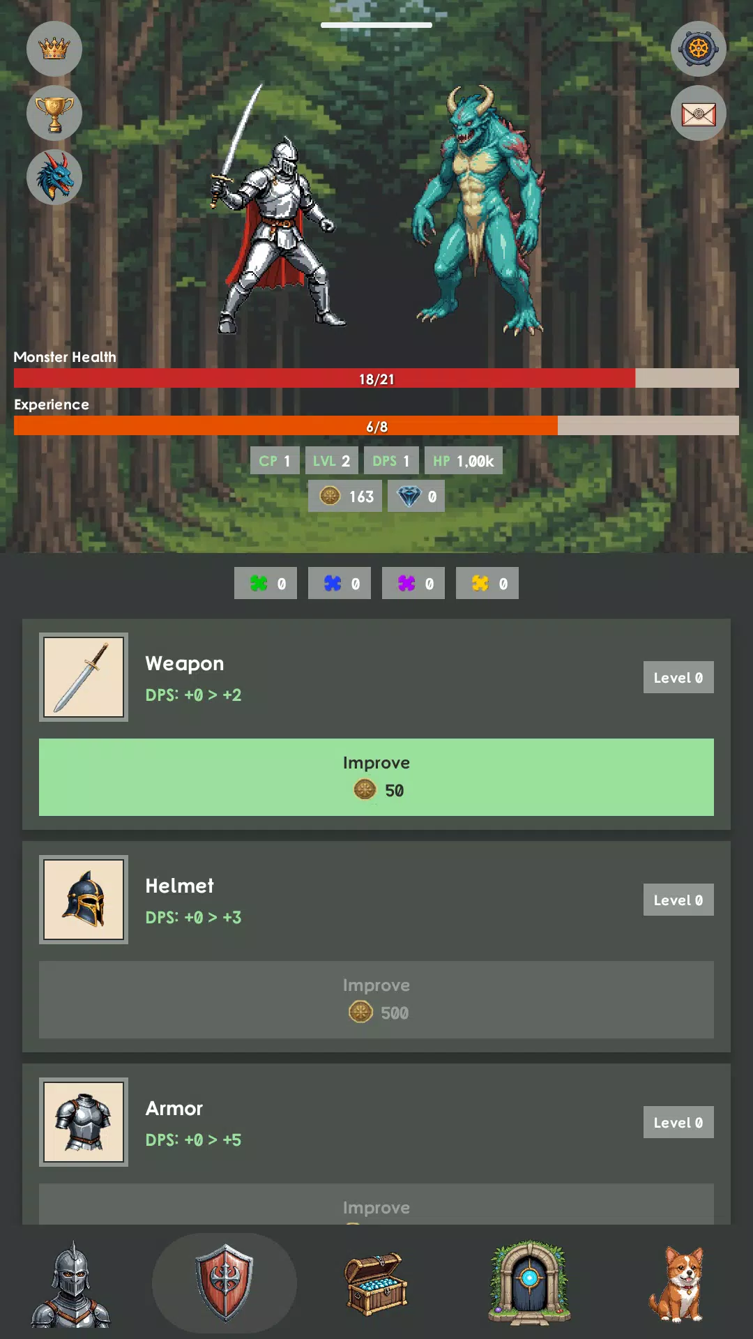 • 收集装备碎片,通过 5 个稀有度等级进化你的装备:白色 → 绿色 → 蓝色 → 紫色 → 金色
