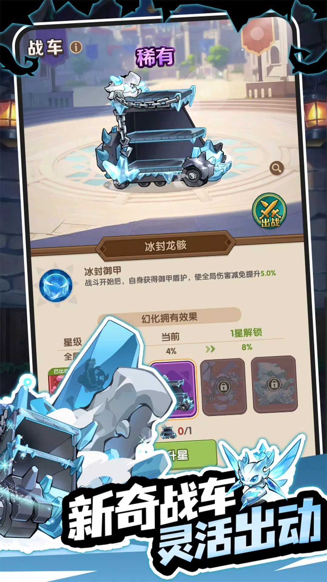 • 战车元素:以男性玩家喜爱的元素为切入点,设计各式各样的战车,让玩家获得更高的成就感。