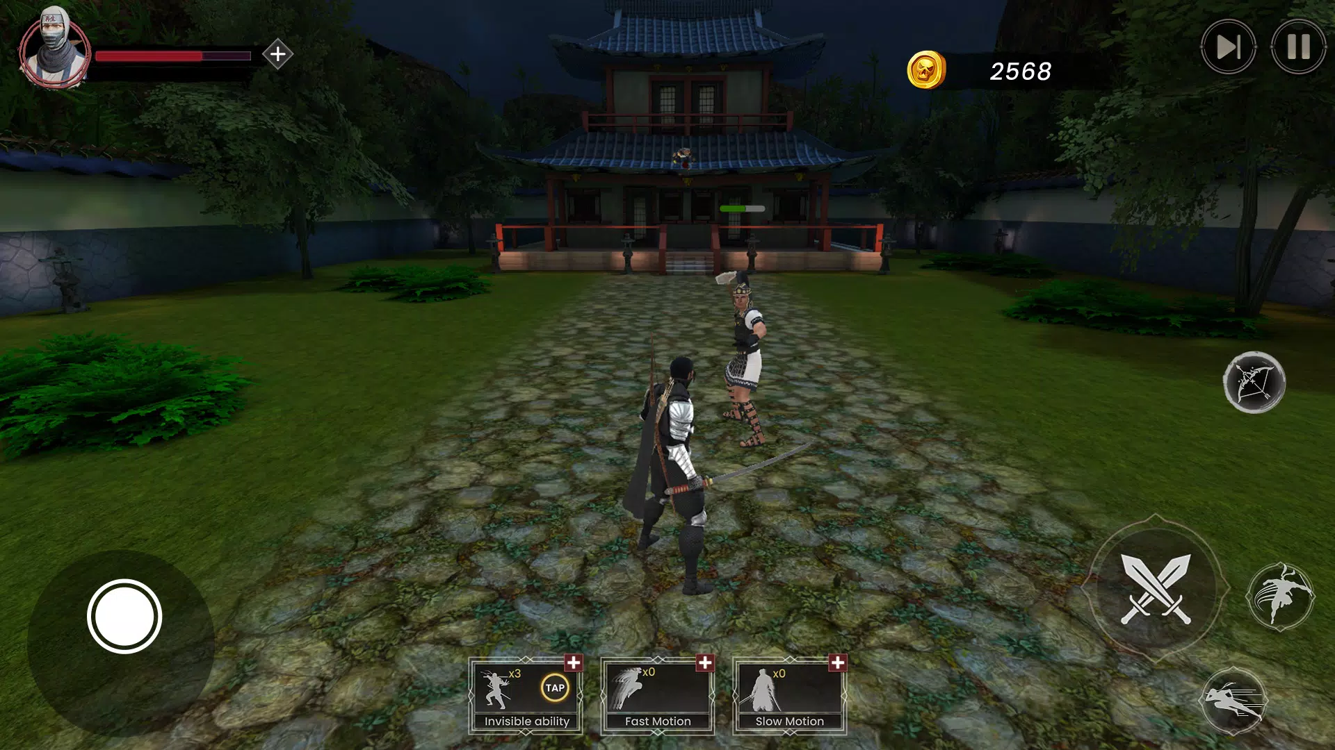 在这款忍者刺客剑术模拟游戏中,从静谧的森林到月光下的古老城堡,每个场景都经过精心设计,让您沉浸在其中。流畅的动画、逼真的剑术物理效果和惊心动魄的音效,让每场战斗都令人难忘。您将成为终极刺客:刻苦训练,为荣誉而战,拥抱阴影。只有最勇敢的战士才能成为传奇。您有能力掌握忍者之道吗?立即下载忍者刺客剑术模拟游戏,开启您的暗影之旅。您将享受众多惊险刺激的忍者刺客战斗,并与敌人激战。您将击败无数的敌人,并证明您终极的忍者隐身实力。您将探索令人惊叹的风景,并在这场忍者刺客信条战斗中练习您的剑术。