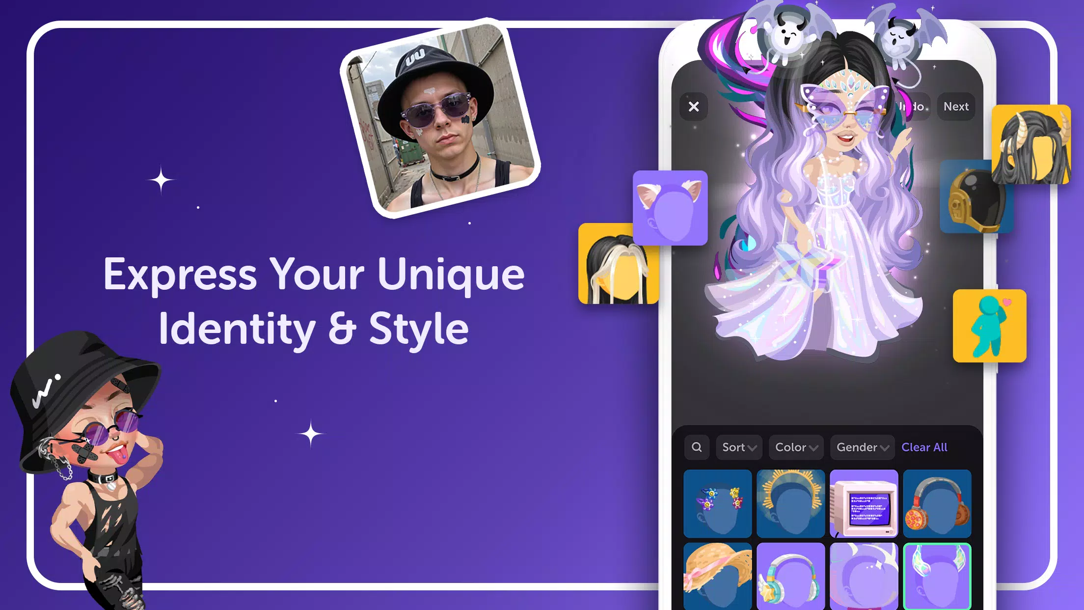 从你的3D捏脸换装工具出发,随心所欲打造理想造型。从超过100万件时尚数字单品中挑选,服饰、发型、配饰,完全是你自己的风格。