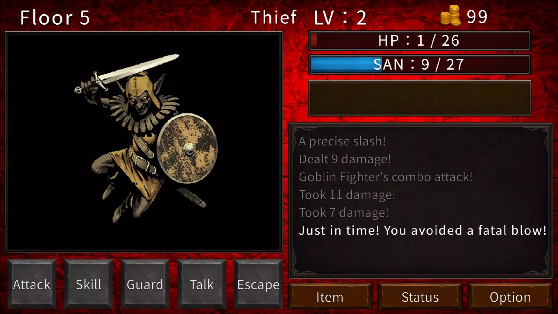 五种行动:攻击、技能、防御、交谈、逃跑。