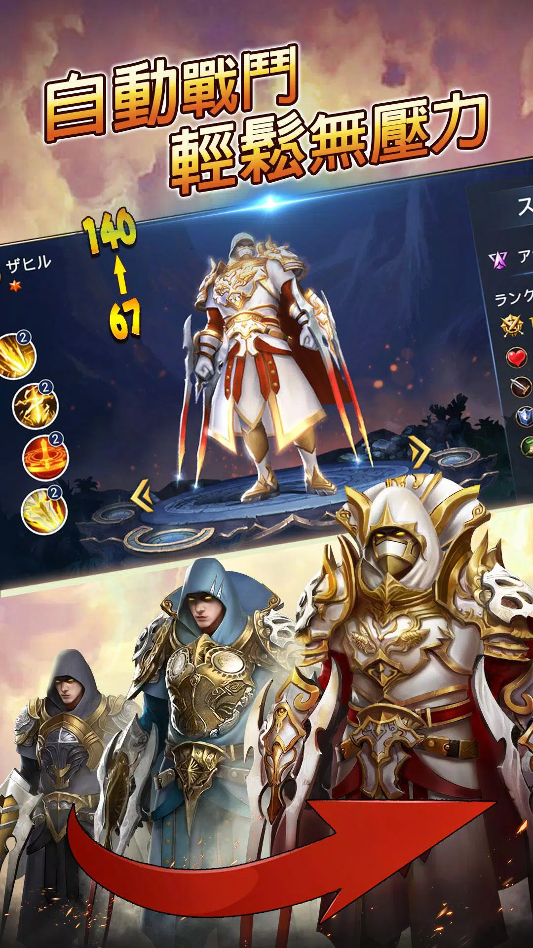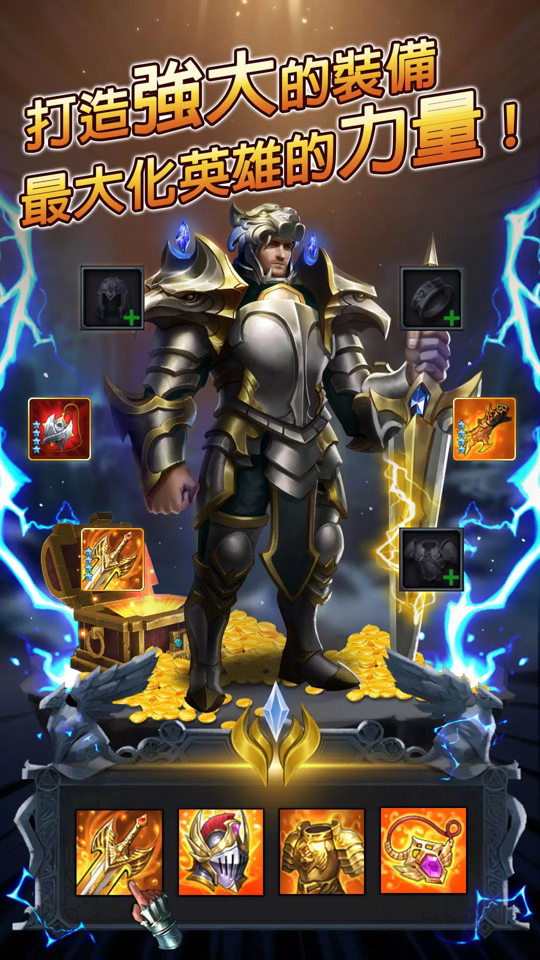 无需线上等待,只需选择英雄阵容及地图,即可累积丰富收益!金币、材料、装备,离线收益将为你提供一切强化英雄所需,一切就是这么简单!