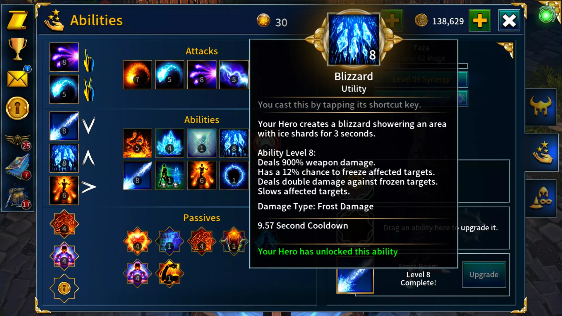 游戏中的每一名英雄都拥有大约20个技能(法术),三名追随者英雄则拥有24个。游戏一开始非常容易上手,但在后期进入高等级关卡后你就需要考虑采用什么样的策略来使用这些技能了。