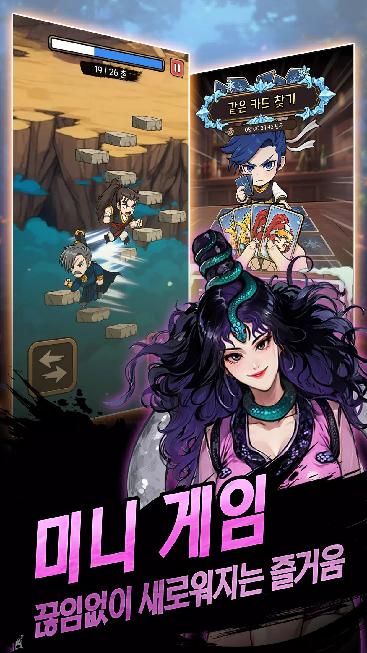 抽卡的乐趣!召唤数十位原创英雄,包括韩必光、潭华麟和金风白,组建你的终极队伍。