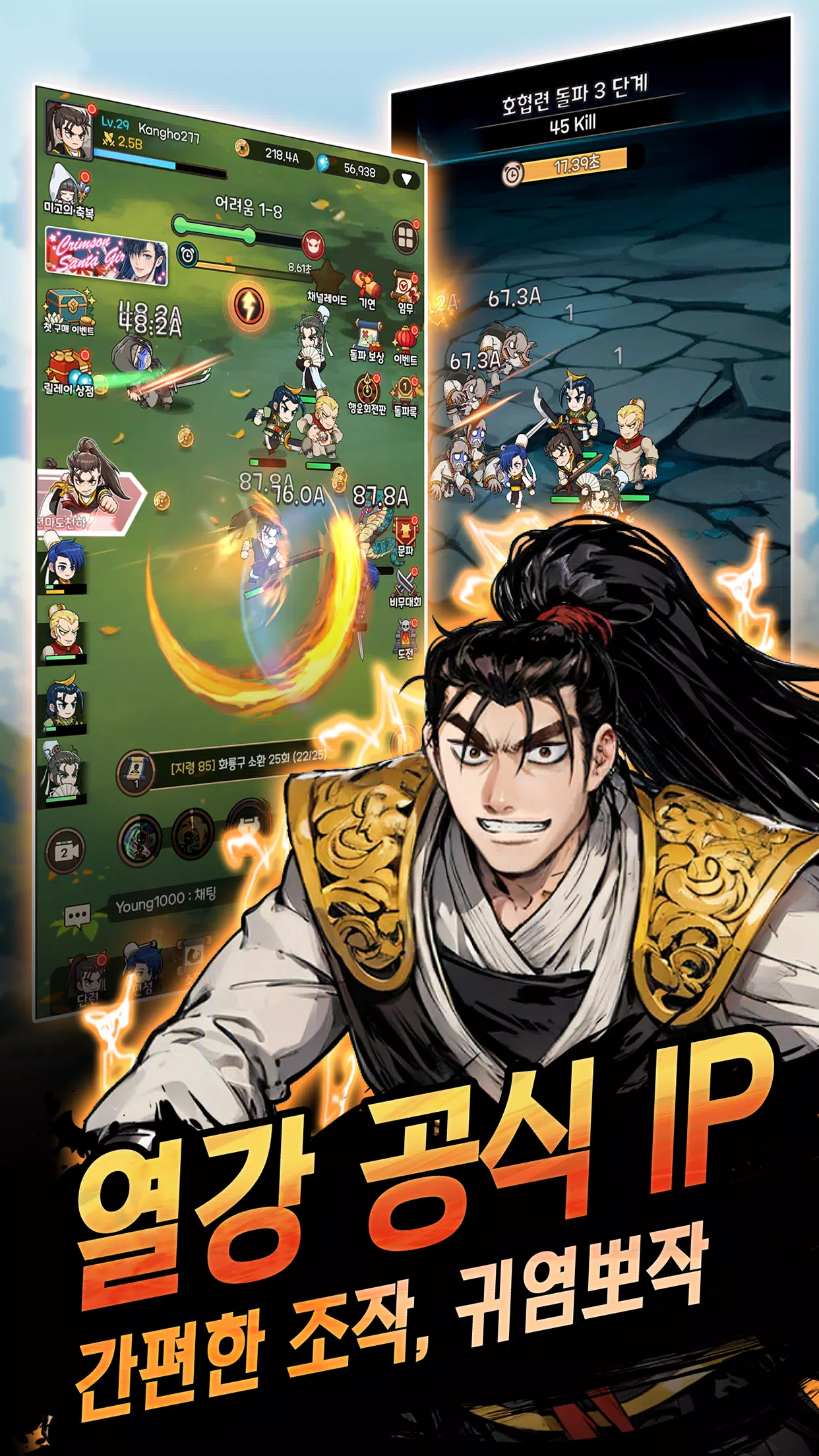 《烈烈江浩:花郎传》将当下热门武侠题材的精彩剧情与放置类游戏的便捷玩法完美结合。