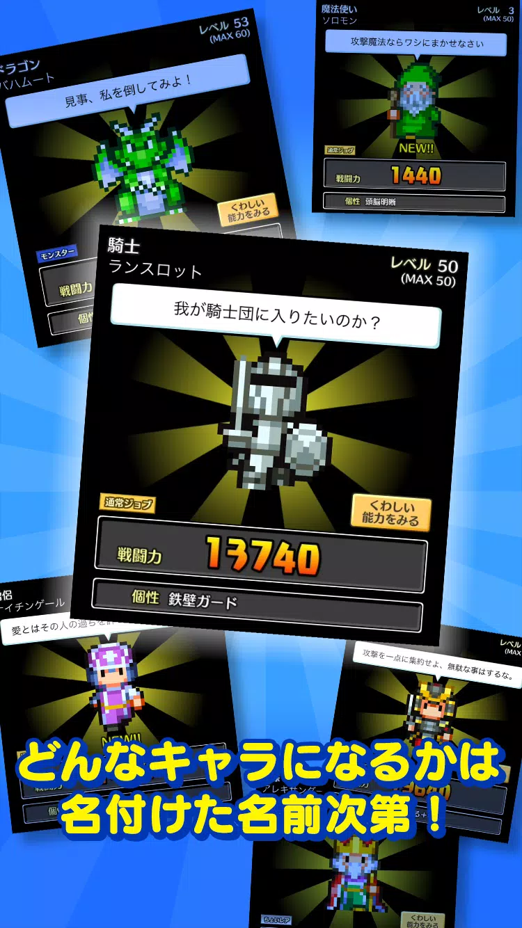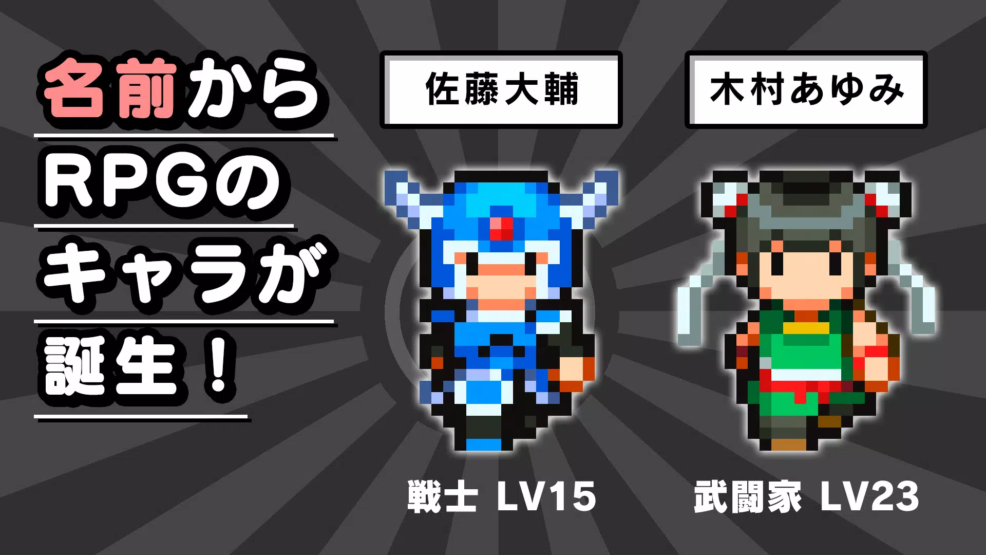 将根据您输入的名称创建具有不同统计数据和工作的角色。什么样的性格取决于名字。找到最强的名字!