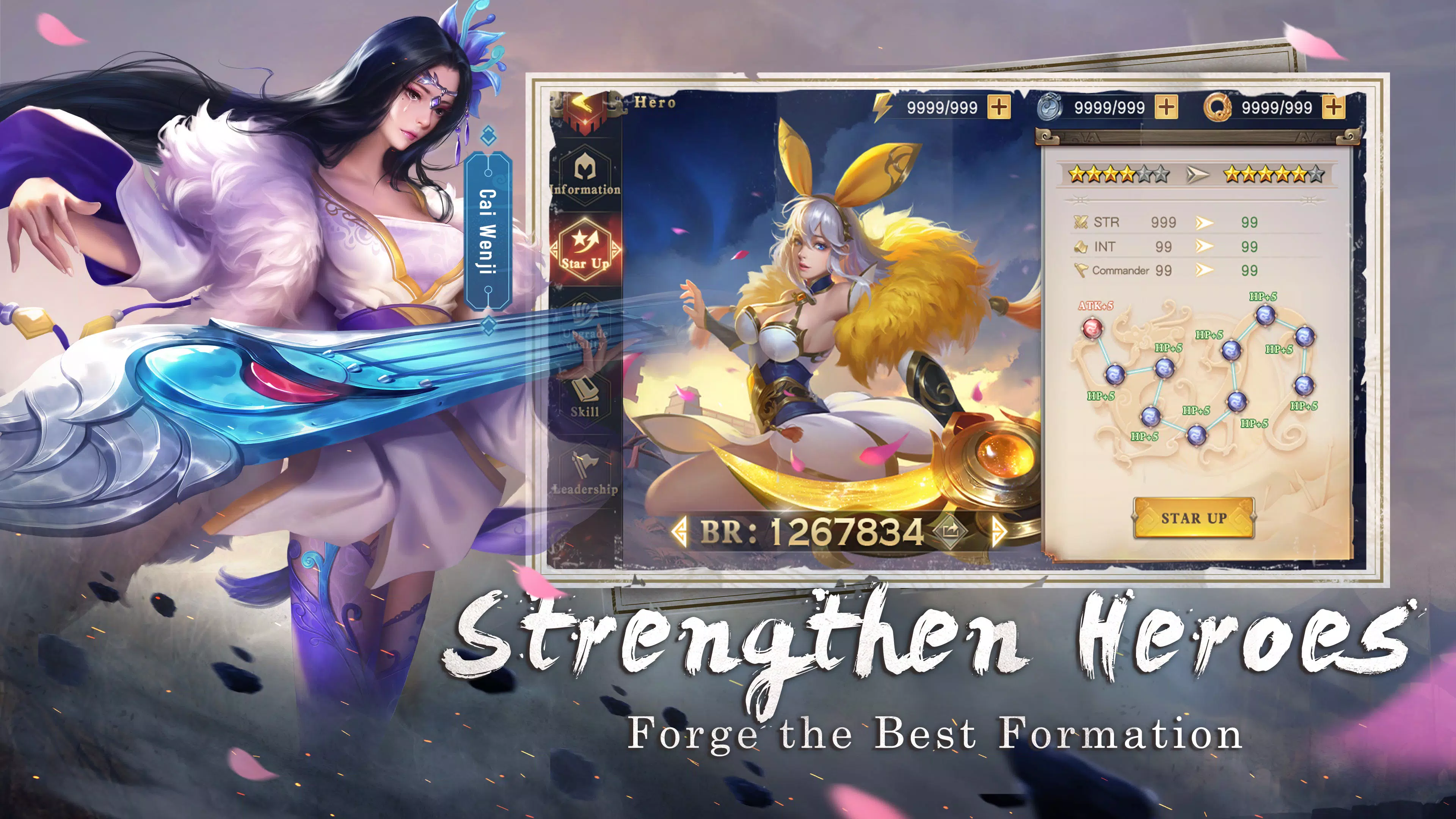 揭开英雄强化背后的秘密!六种不同类型的将领等待你的悉心指导。挑选你最喜爱的英雄,打造你心仪的阵容!