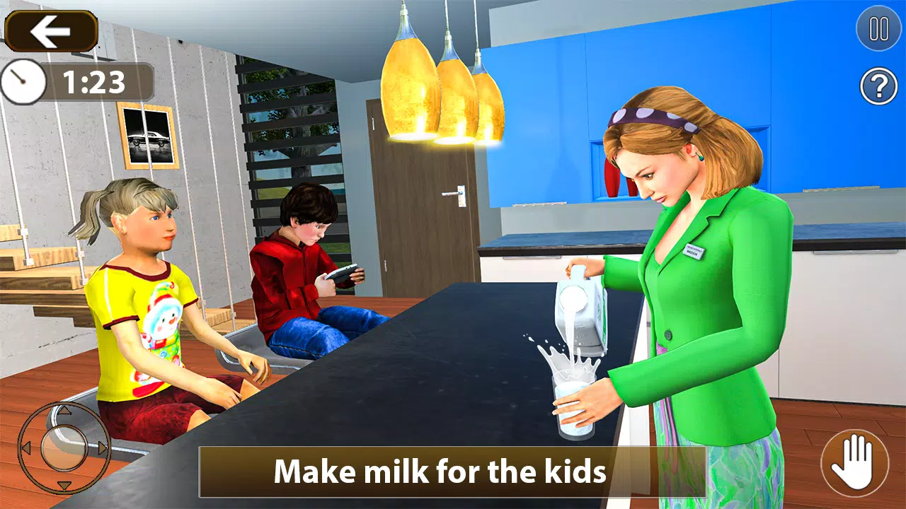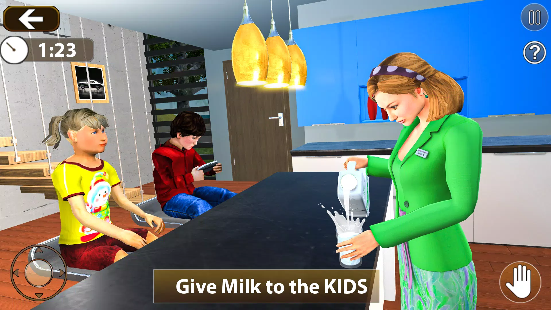 如果您想赢得虚拟妈妈幸福生活的挑战,您需要完成日常任务和家务活动,例如购物、准备饭菜并让您的儿子准备上学。现在是时候在这个 2022 年的幸福家庭趣味模拟器游戏中扮演多个角色了。开始玩虚拟母亲游戏模拟器幸福生活:家庭妈妈模拟器!您玩过很多虚拟游戏,但这是 Play 商店中最好的虚拟母亲模拟器游戏。在这个虚拟游戏中,有许多令人兴奋的虚拟母亲游戏家庭任务可供体验。获得在家庭模拟器的梦想家园中玩耍的机会。这将是您的第二人生,您可以成为一名母亲,感受母亲的真实生活。享受妈妈模拟器的乐趣,其中包括闲散的妈妈日常生活中的日常任务,例如做饭和准备早餐、打扫房间、叫醒孩子上学。欣赏家庭模拟器 2022 中职业妈妈的生活方式。您玩游戏,但还没有体验过那种虚拟游戏的激动人心的任务。这款娱乐游戏专为虚拟母亲游戏家庭游戏爱好者设计,让他们可以享受虚拟母亲模拟游戏。赶快来玩这款虚拟母亲游戏,在2022年的家庭母亲模拟器游戏中体验当家作主的生活吧。