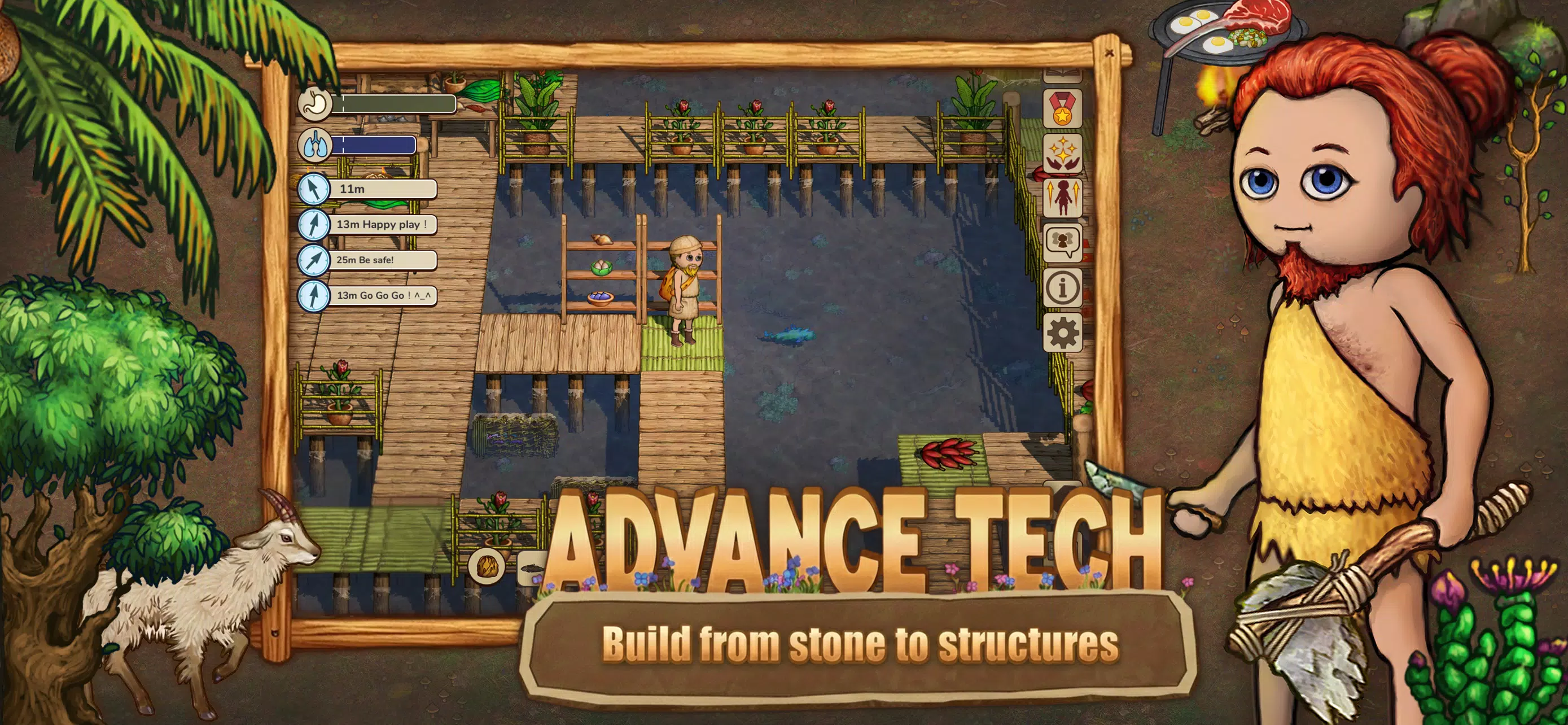 这是一部风格可爱的生存与建造游戏。在这里,你可以与其他玩家联手组成氏族或是部落,共同提高生存几率,并不断发展你们共同创造的科技与文化。