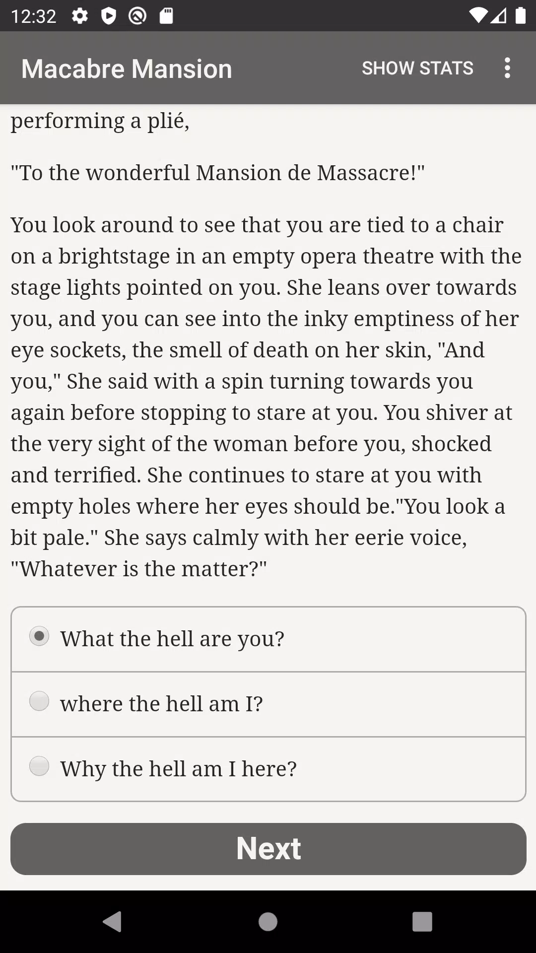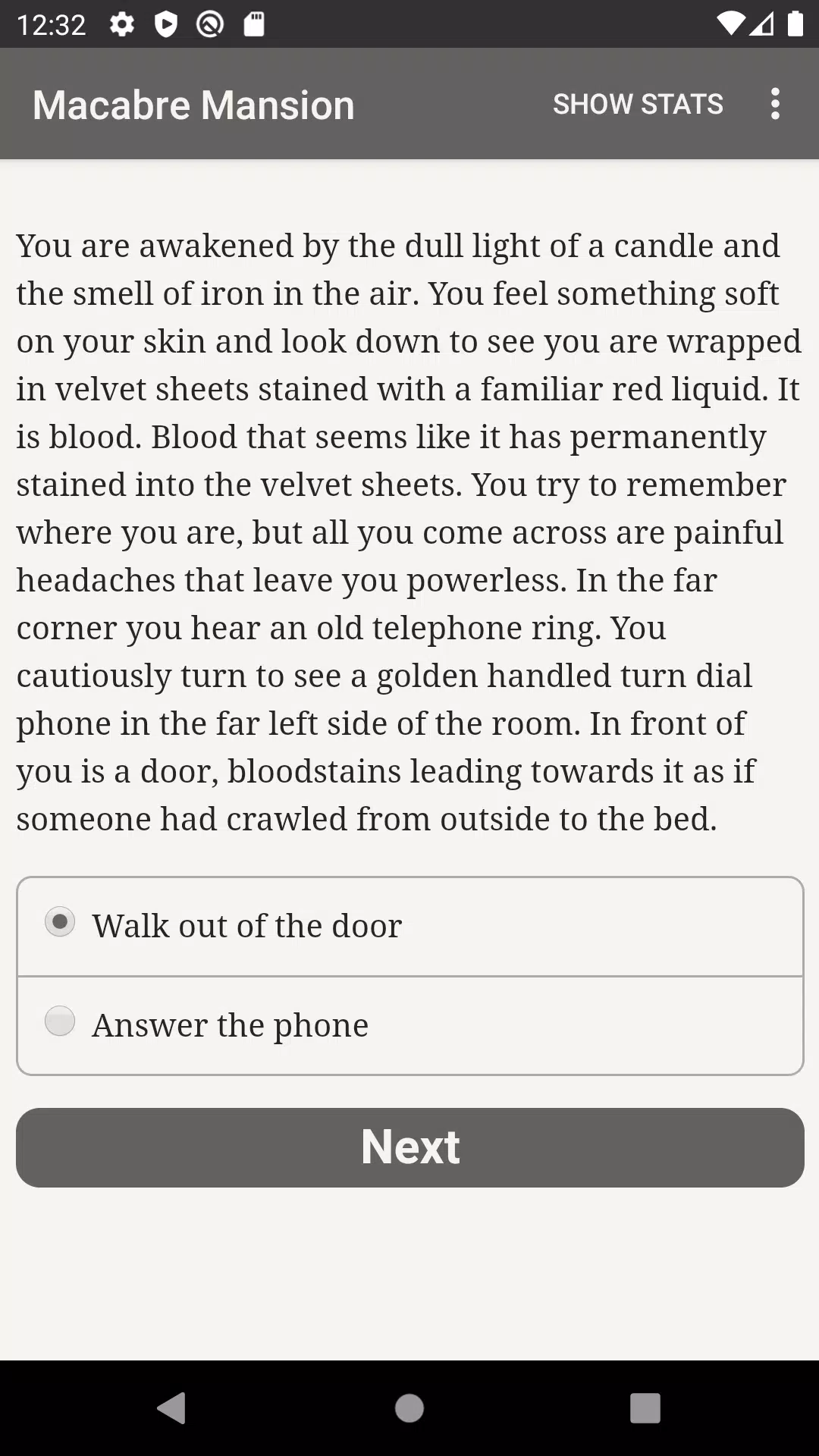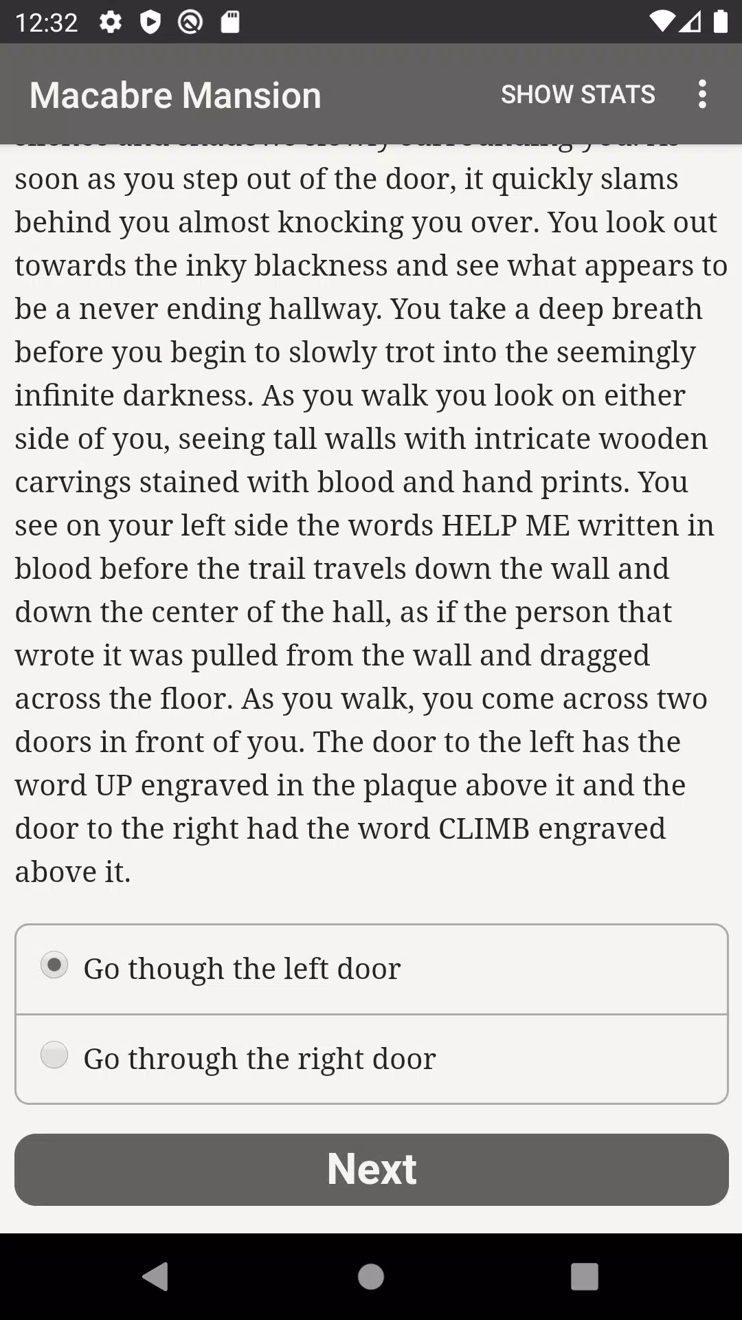 《恐怖宅邸》是比利·托尔斯创作的一部43000字的互动式恐怖小说,你的选择将决定故事的走向。它完全基于文字——没有图像或音效——并由你那浩瀚无垠、势不可挡的想象力驱动。