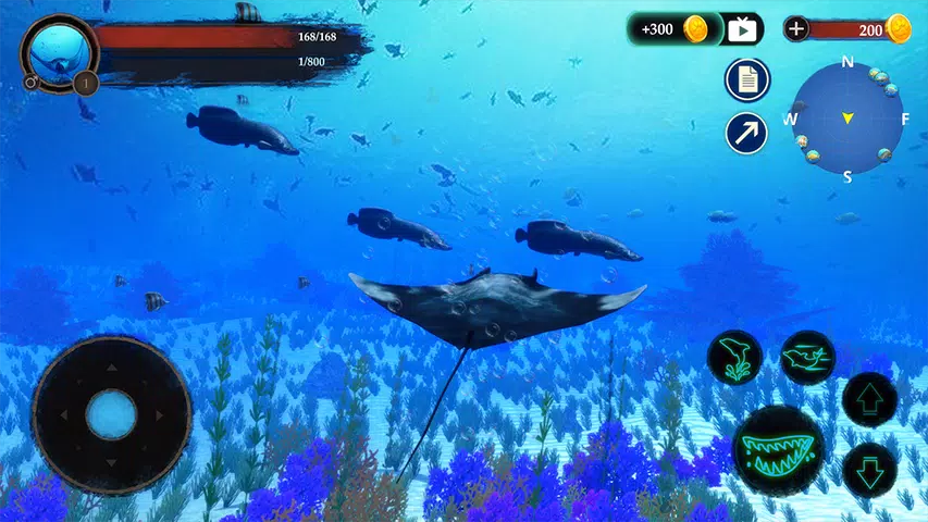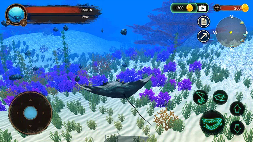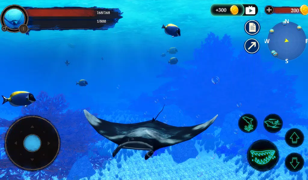 这是一款蝠鲼游戏,你将扮演一条蝠鲼,与海洋生物互动。在这个虚构的场景中,你将探索并融入水下世界,免受蝠鲼捕食者的威胁。需要注意的是,在现实生活中,蝠鲼是滤食性动物,不会捕食其他动物。
