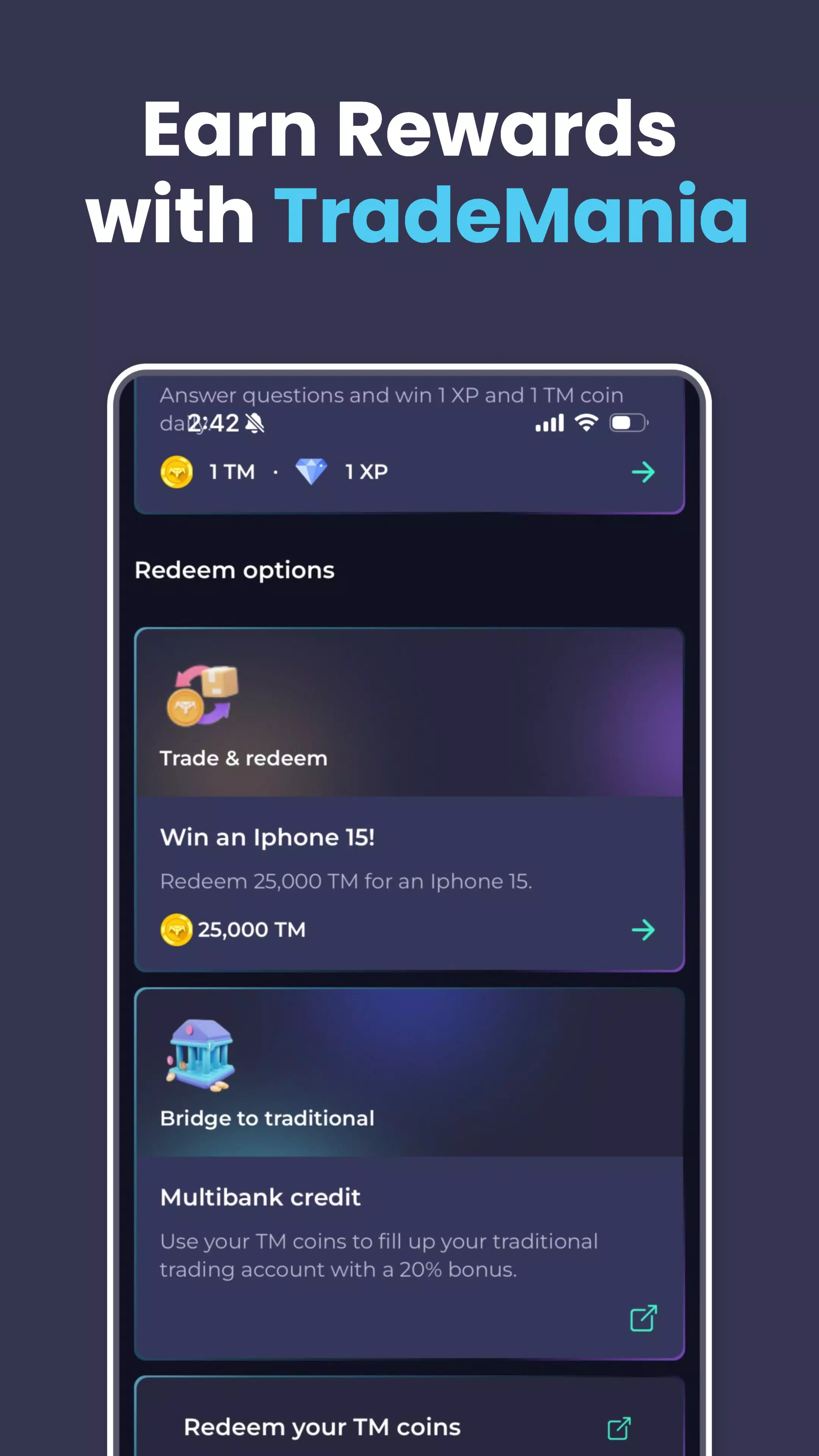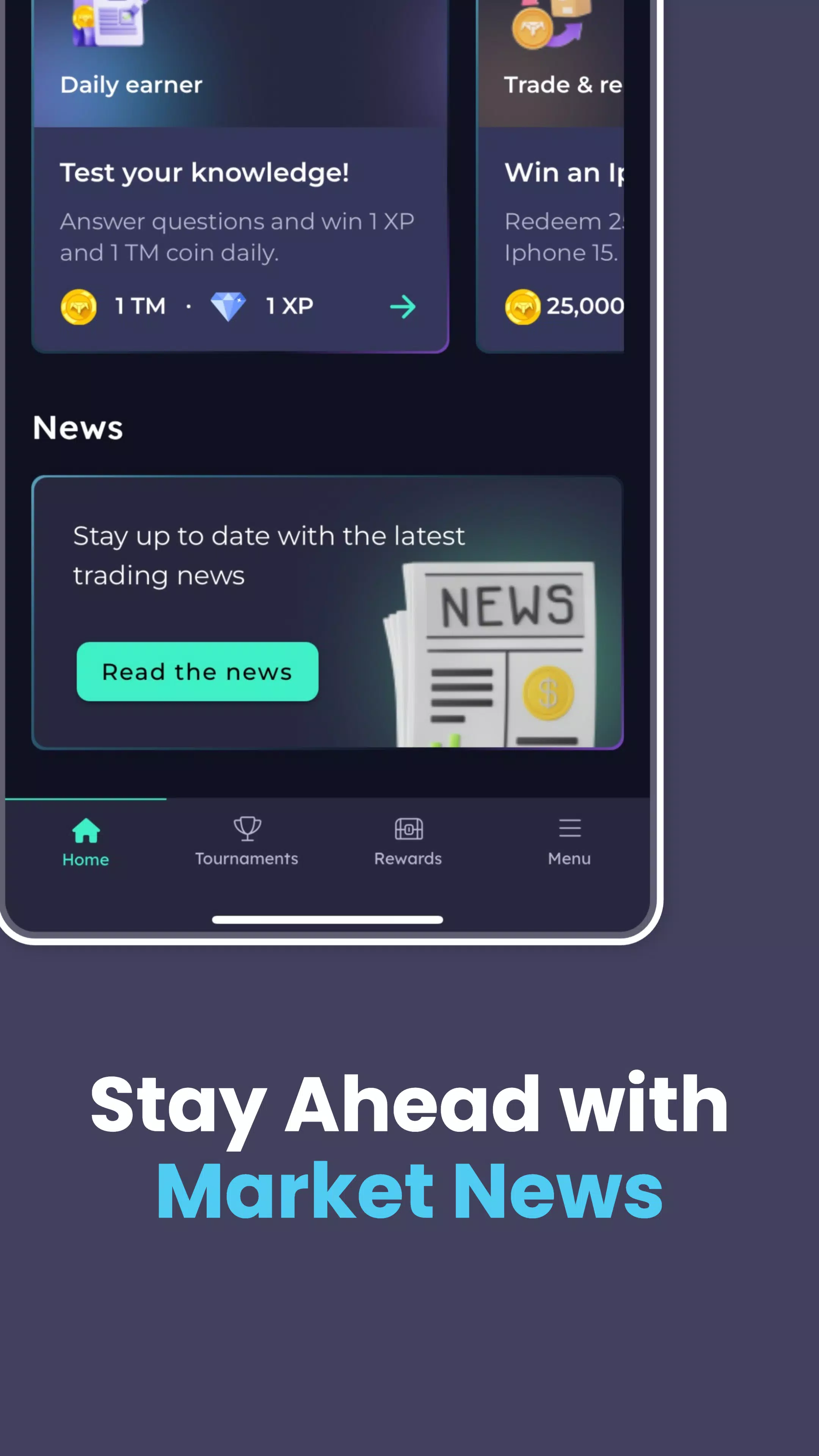 • 获胜并升级:超越竞争对手,赢取 TradeMania 币和经验值。解锁新功能,升级,并在排名上升时获得专属奖励。