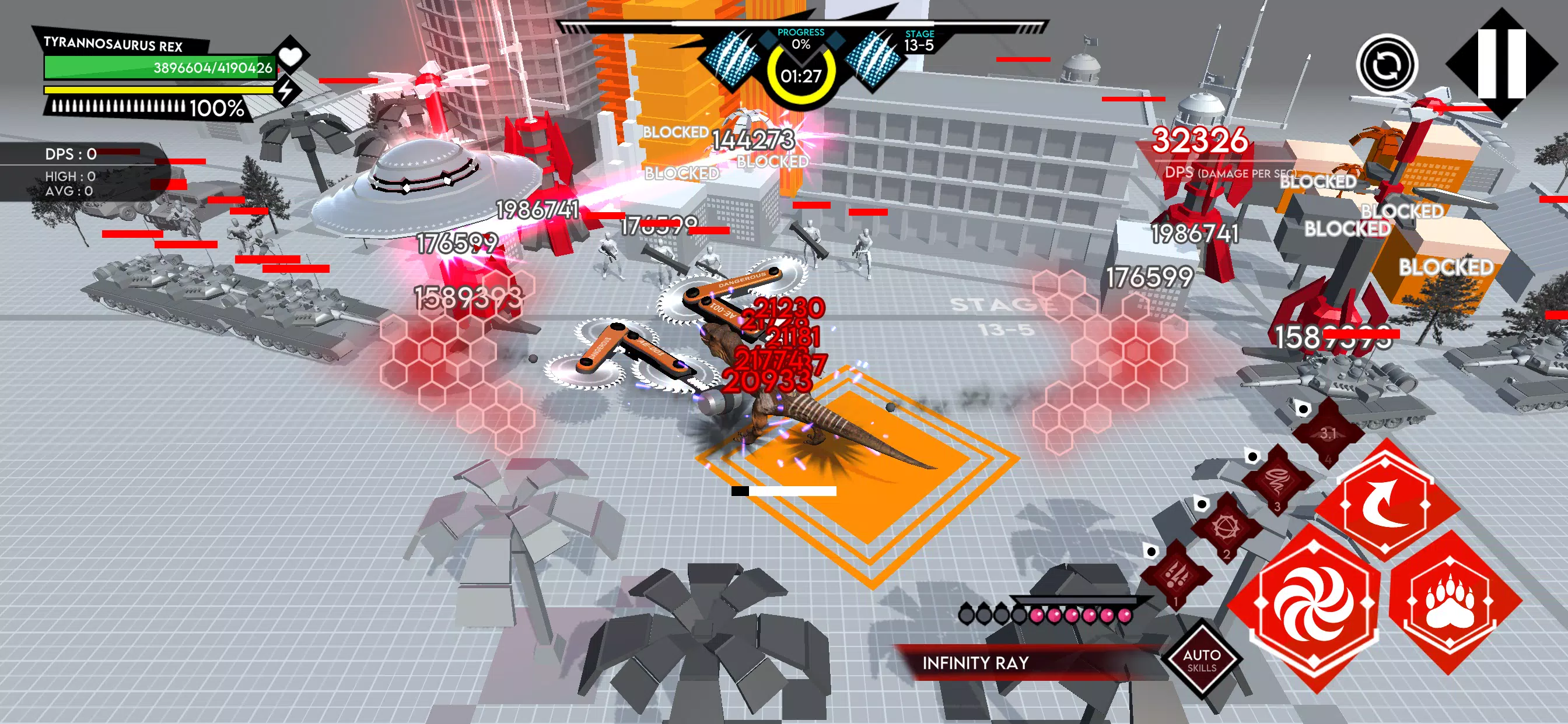 升级你的变异恐龙霸王龙,解锁新能力,并不断提升破坏力。
