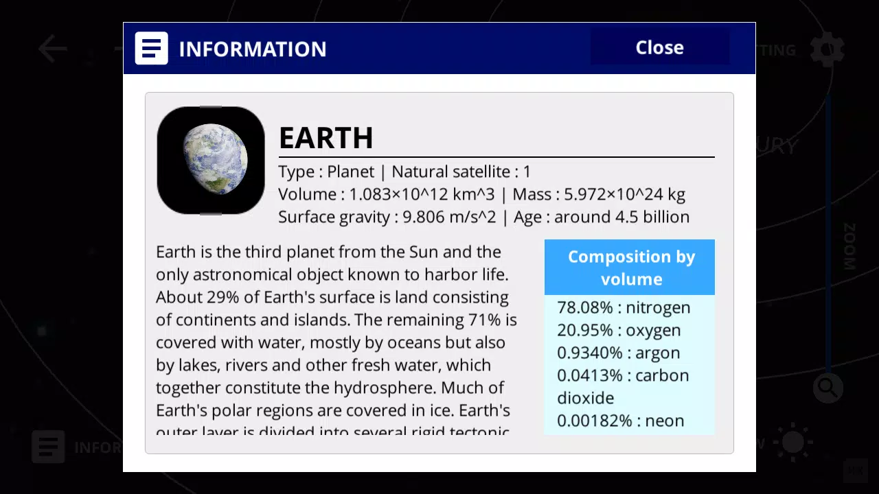 – 逼真的太阳系体验:尖端的图形处理技术,将行星、卫星和小行星栩栩如生地呈现出来,让您以前所未有的方式见证太阳系的美丽。探索地球、火星、木星及其他天体的精细 3D 模型,深入了解每个天体。
