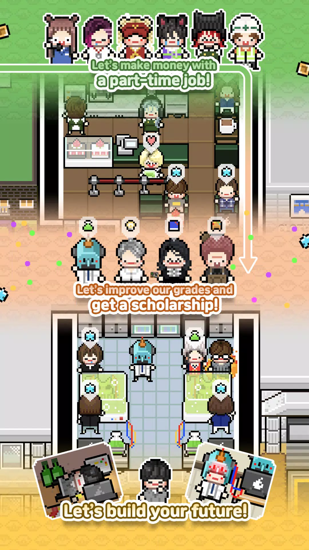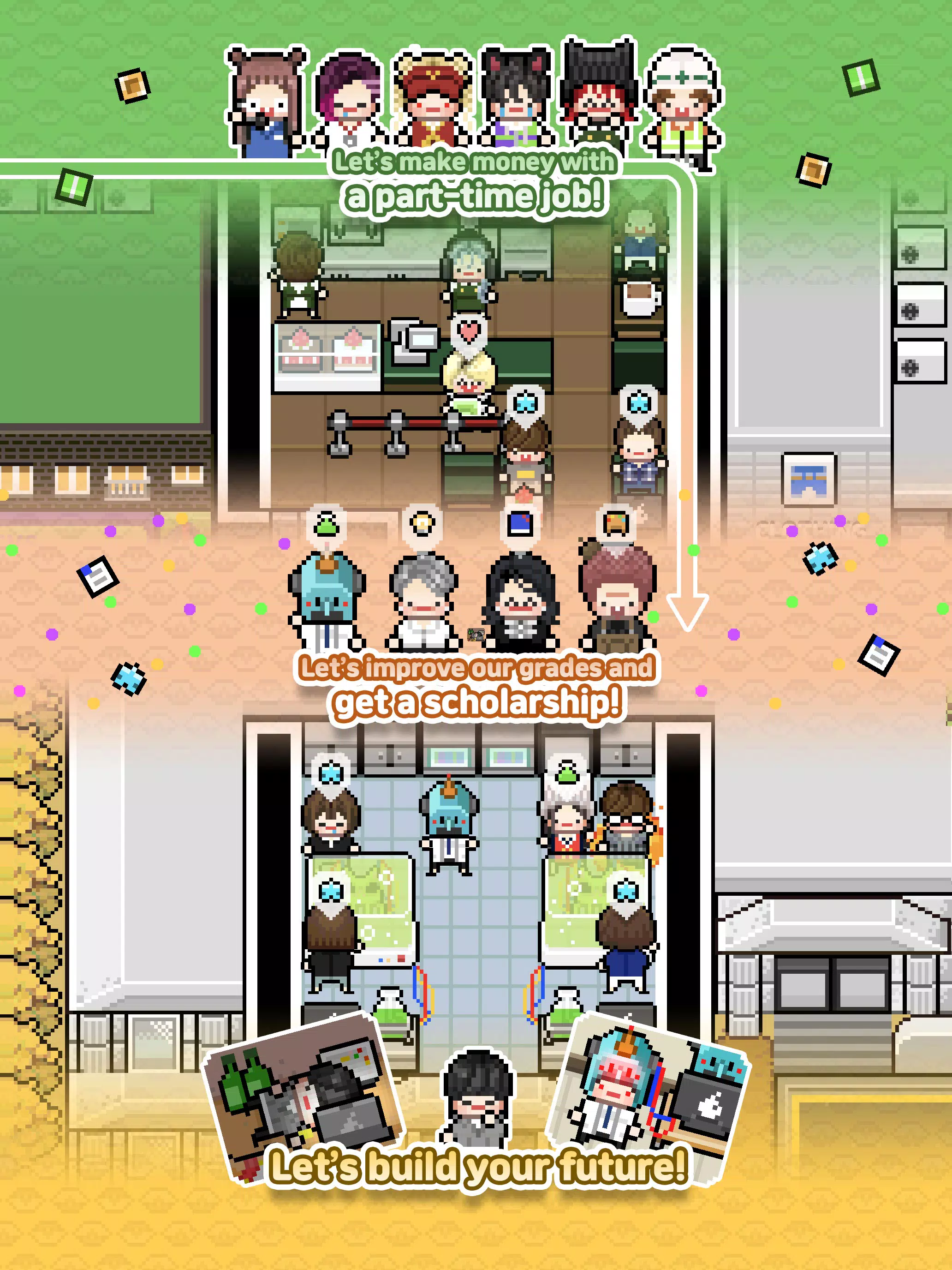 – 使用宠物和药水的增益效果来提升您的时薪和成绩!