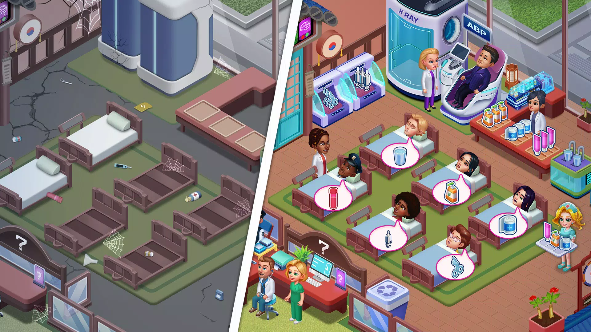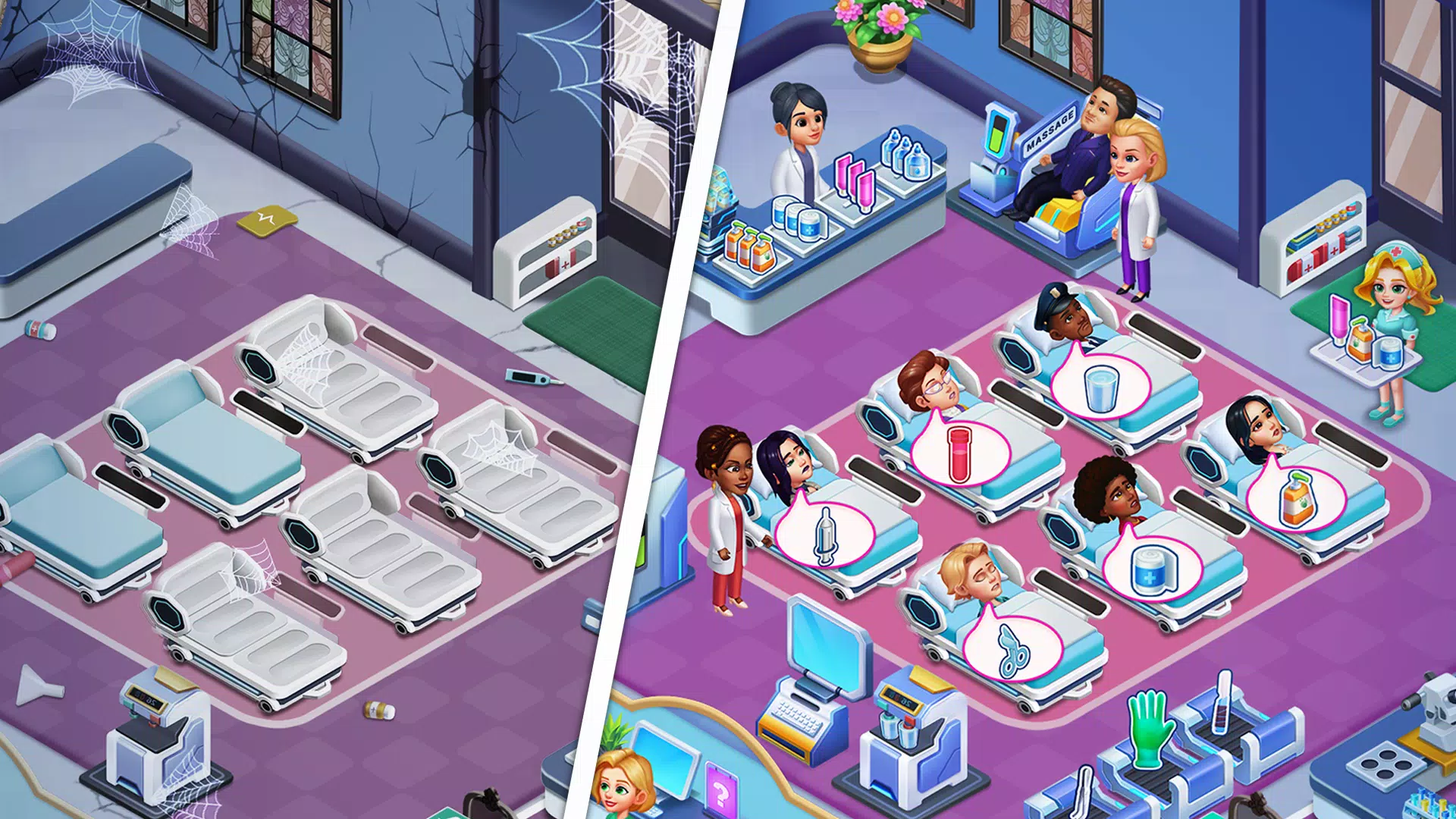 立即下载《疯狂医院》:在ASMR游戏中,建造升级的医疗中心,体验牙医游戏和护理游戏的乐趣。在我们的医院游戏中,一支专业医生团队正在研究不同疾病的治疗方法。这款外科医生模拟器因其令人上瘾的医疗游戏玩法而成为时间管理游戏类别。