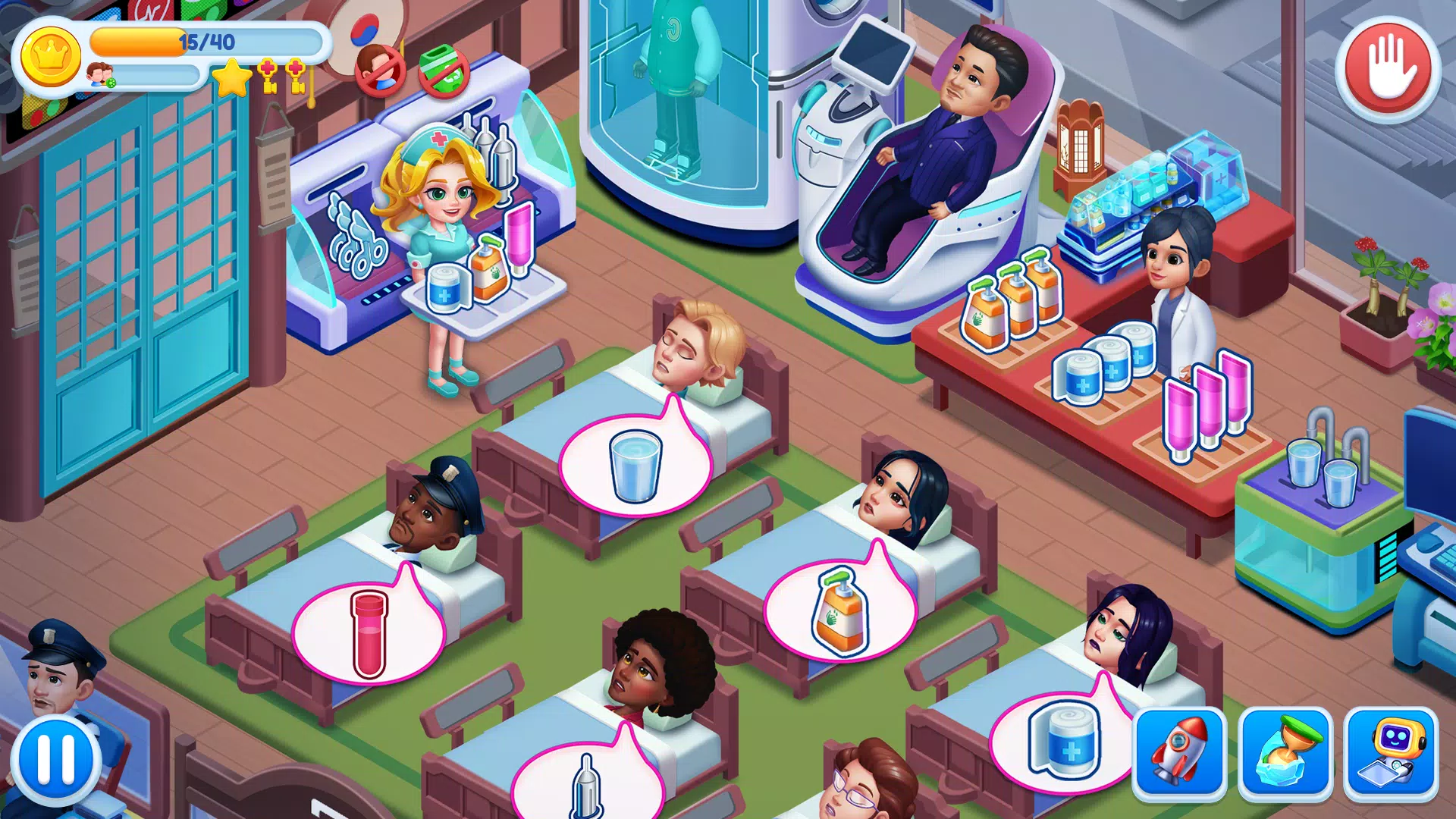 进入《疯狂医院》这款趣味十足的医生游戏,体验医疗保健的世界!在这款充满乐趣的医院游戏中,您可以管理由专业 ASMR 医生组成的梦幻团队。在这款牙医游戏中,您将扮演专业的医生、牙医和护士,诊断和治疗患者,管理疯狂诊所的资源,并做出挽救生命的决策,因为健康才是真正的财富。