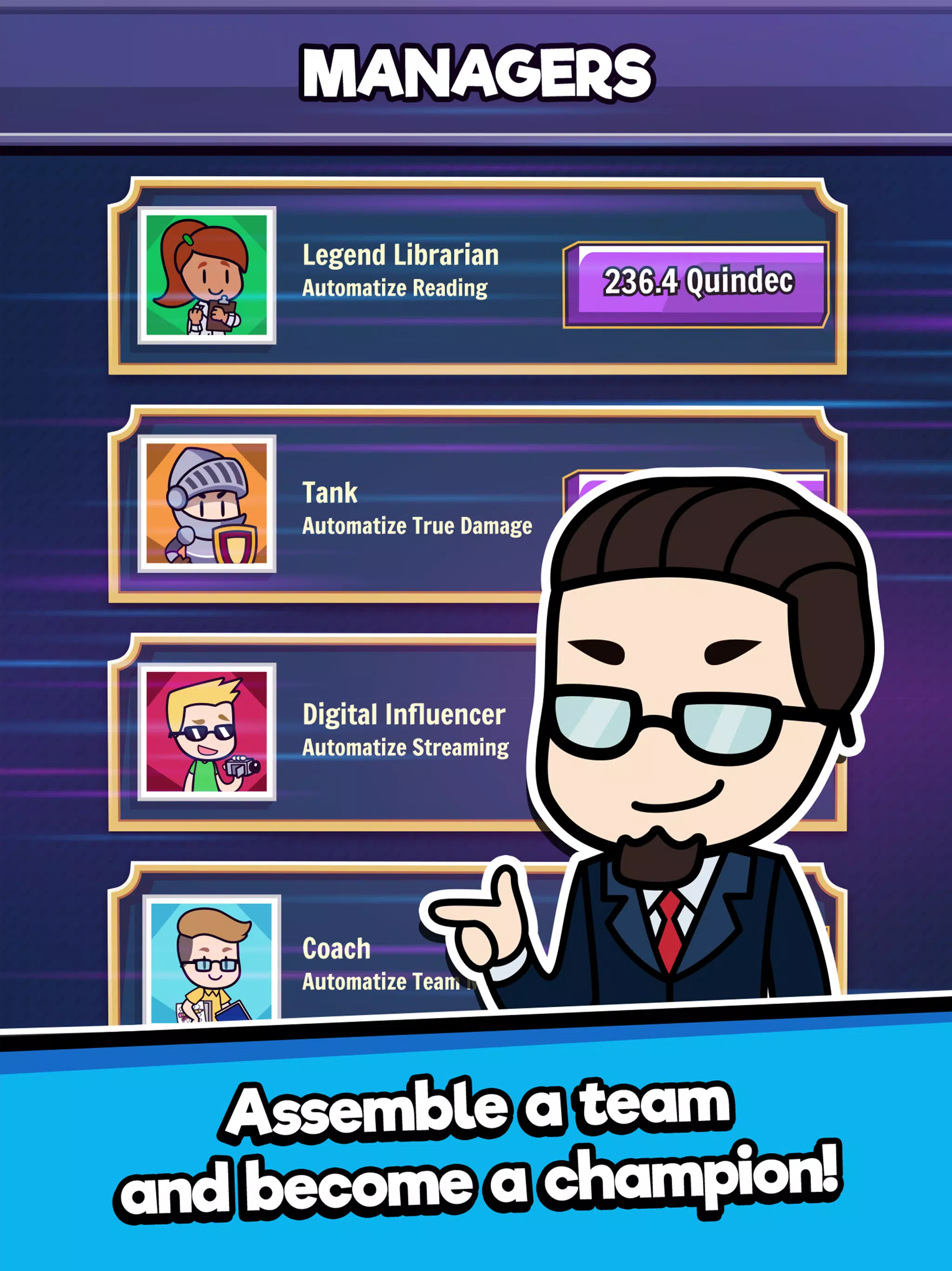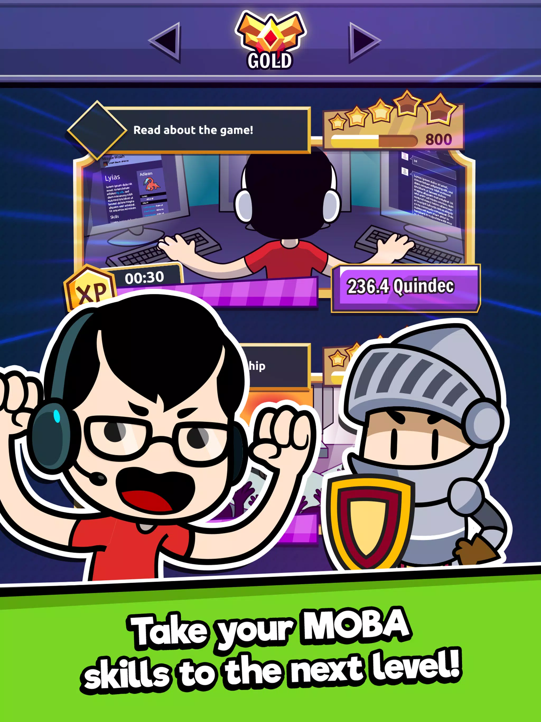 🎮通过执行各种操作并赚取经验值来升级!像放置点击类游戏的职业玩家一样轻触屏幕,见证你的电竞生涯飞速发展!