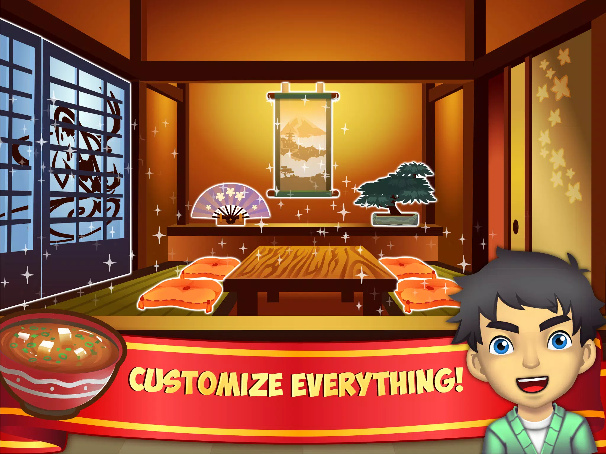在我的寿司店里,你需要用餐厅的特色美味招待顾客:日本米饭、海苔、蟹肉、三文鱼、鲜蘑菇、春卷等等!再来点味噌汤和白茶,让顾客们满意!