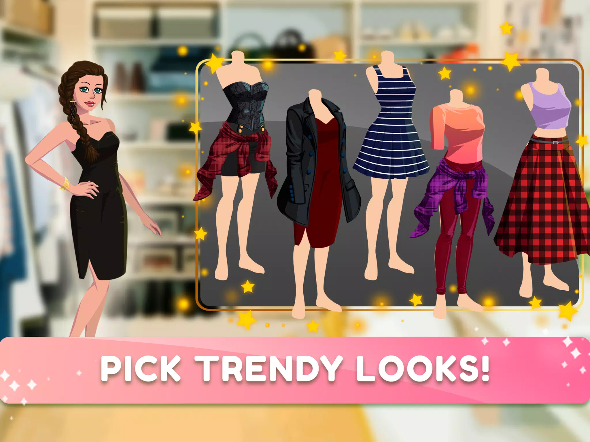 • 从完整的衣橱中选择鞋子、衣服和配饰,定制你的服装。