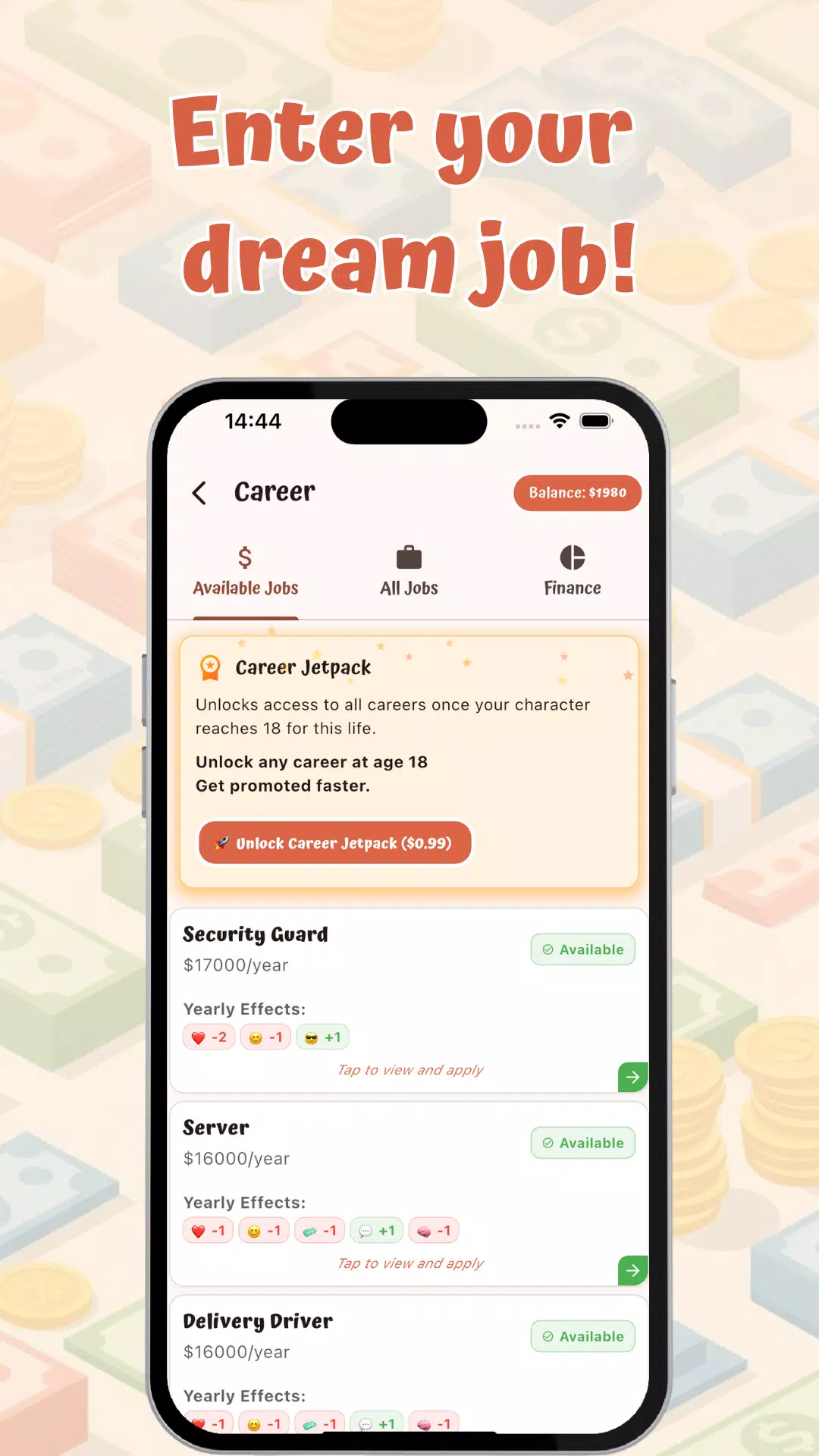 • 丰富的职业选择:选择你的工作,管理你的收入,控制你的开支,打造你梦想的职业生涯。