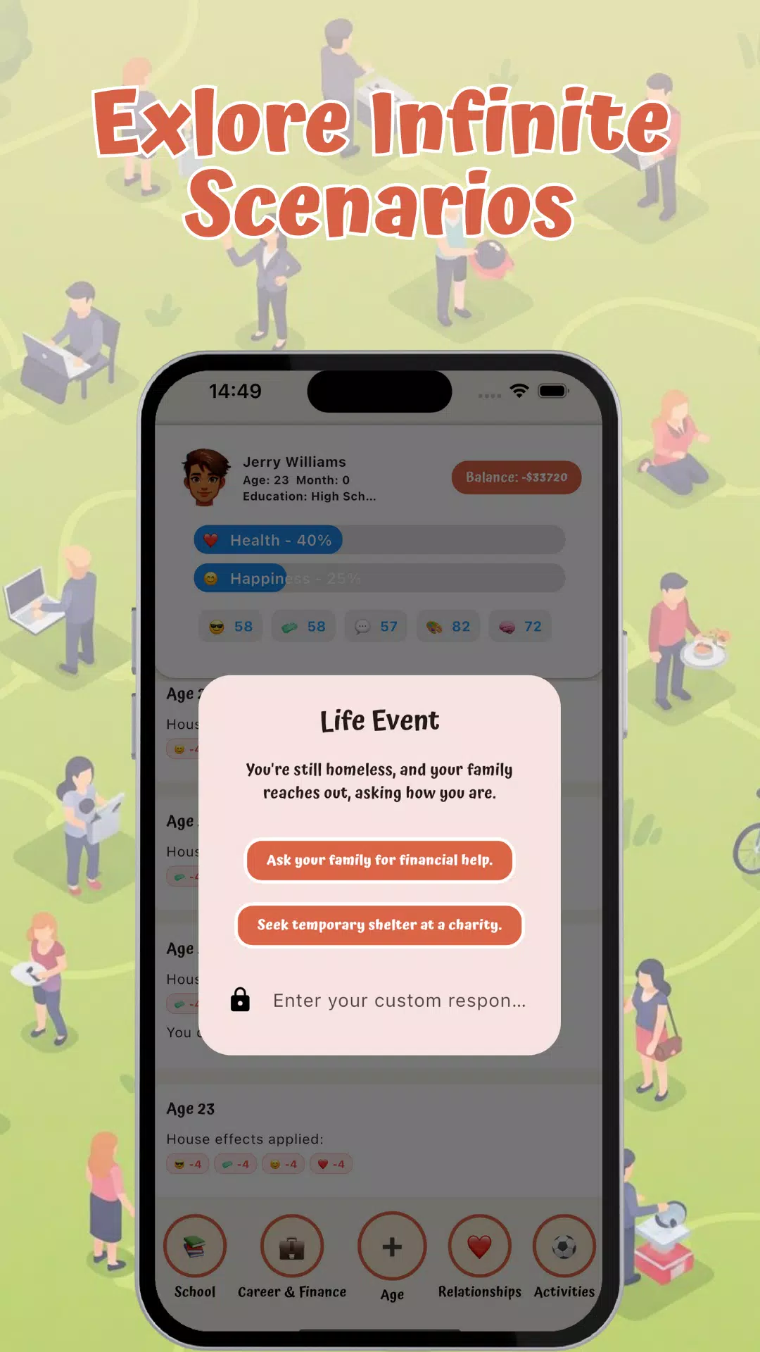 立即开始您的人生冒险之旅!立即下载,在这款终极 AI 生活模拟游戏中,见证您的决定将带您走向何方。