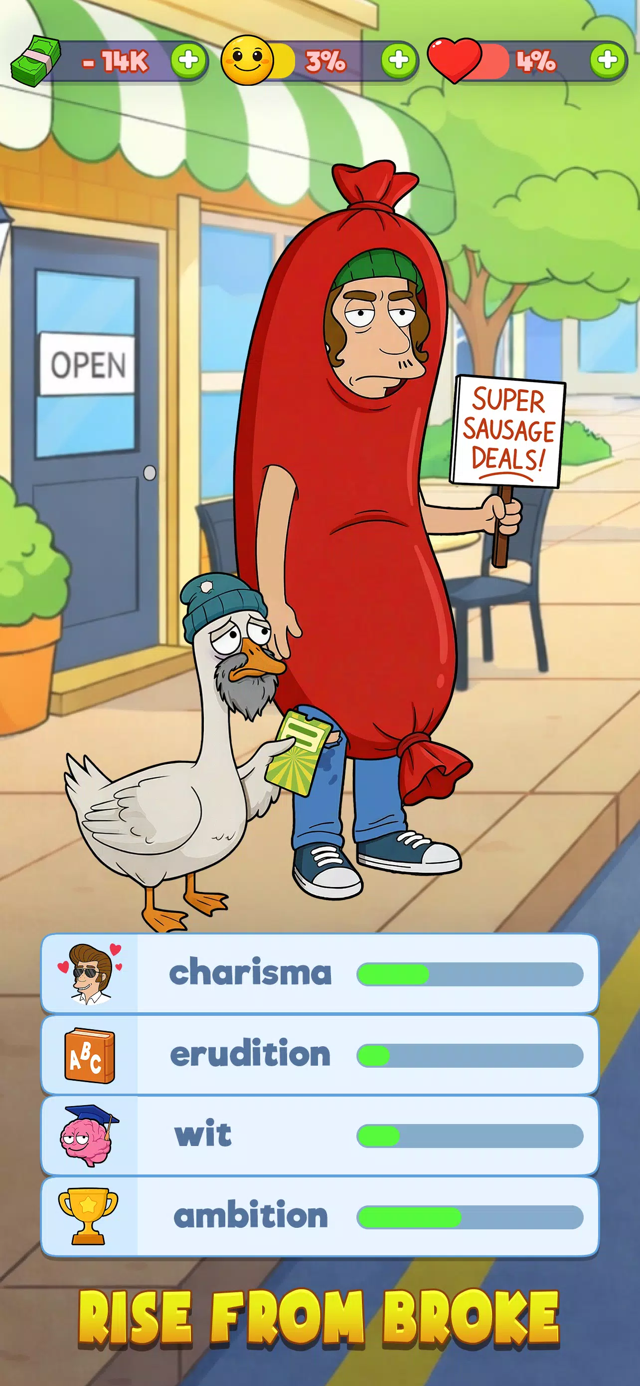 一款逼真的生活模拟游戏,你将从一无所有开始,一步步积累财富,最终走向无限辉煌。没有钱,没有工作,没有房子,只有你和你的每一个决定。