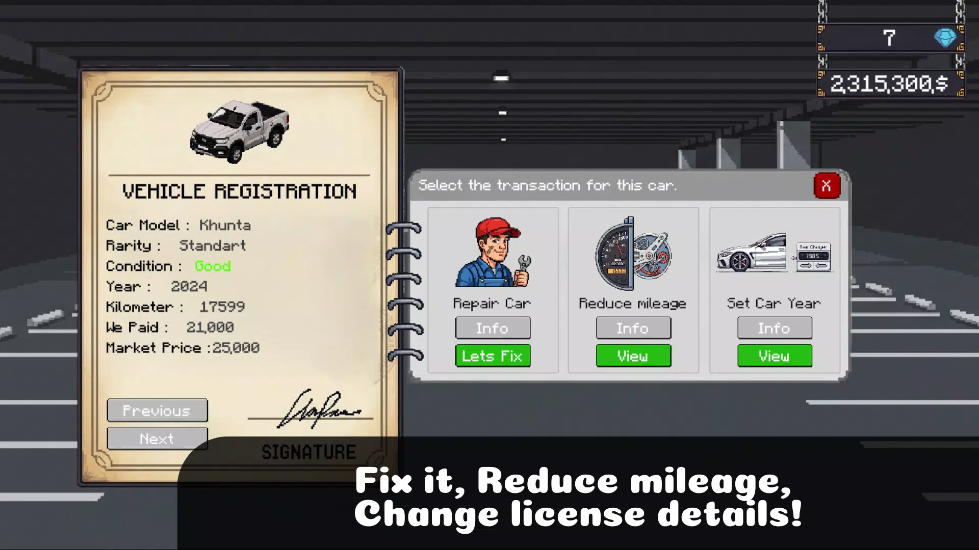 – 维修与操控:修复汽车、降低里程、调整牌照信息,最大化利润。