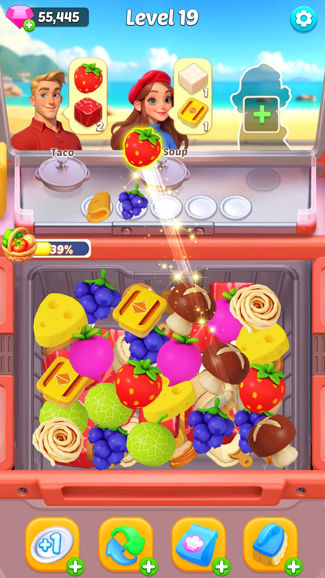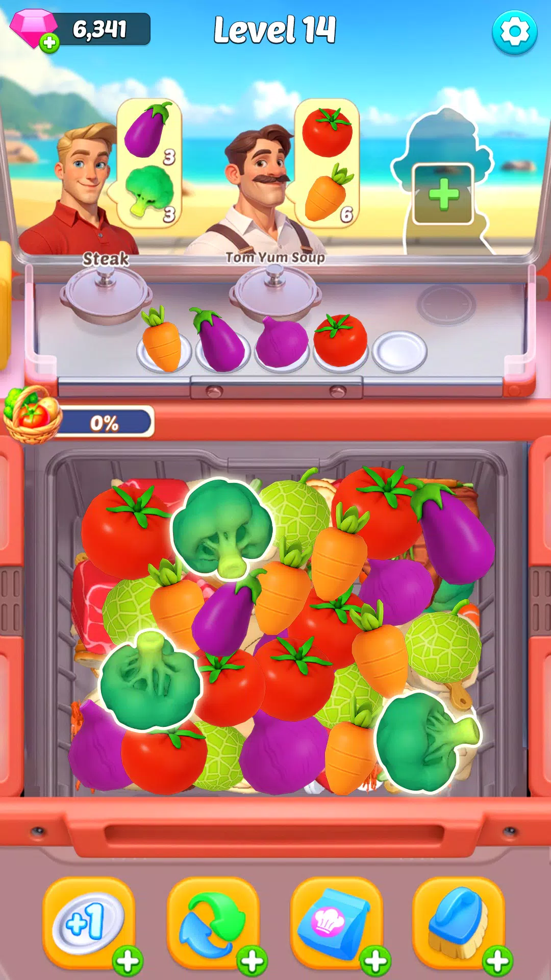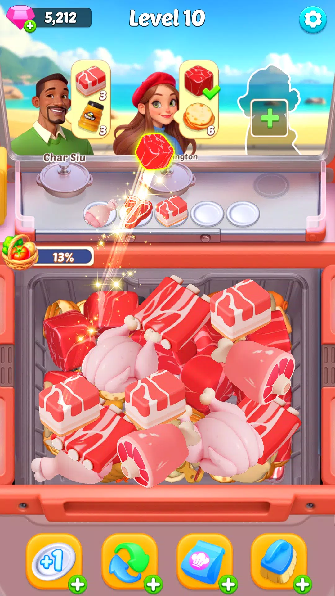 匹配蔬菜、肉类、香料等食材,完成每道菜谱。清理餐桌,完成订单,让你的厨房高效运转。在游戏中赢取奖励,升级并解锁新的菜谱、食材和升级项目!