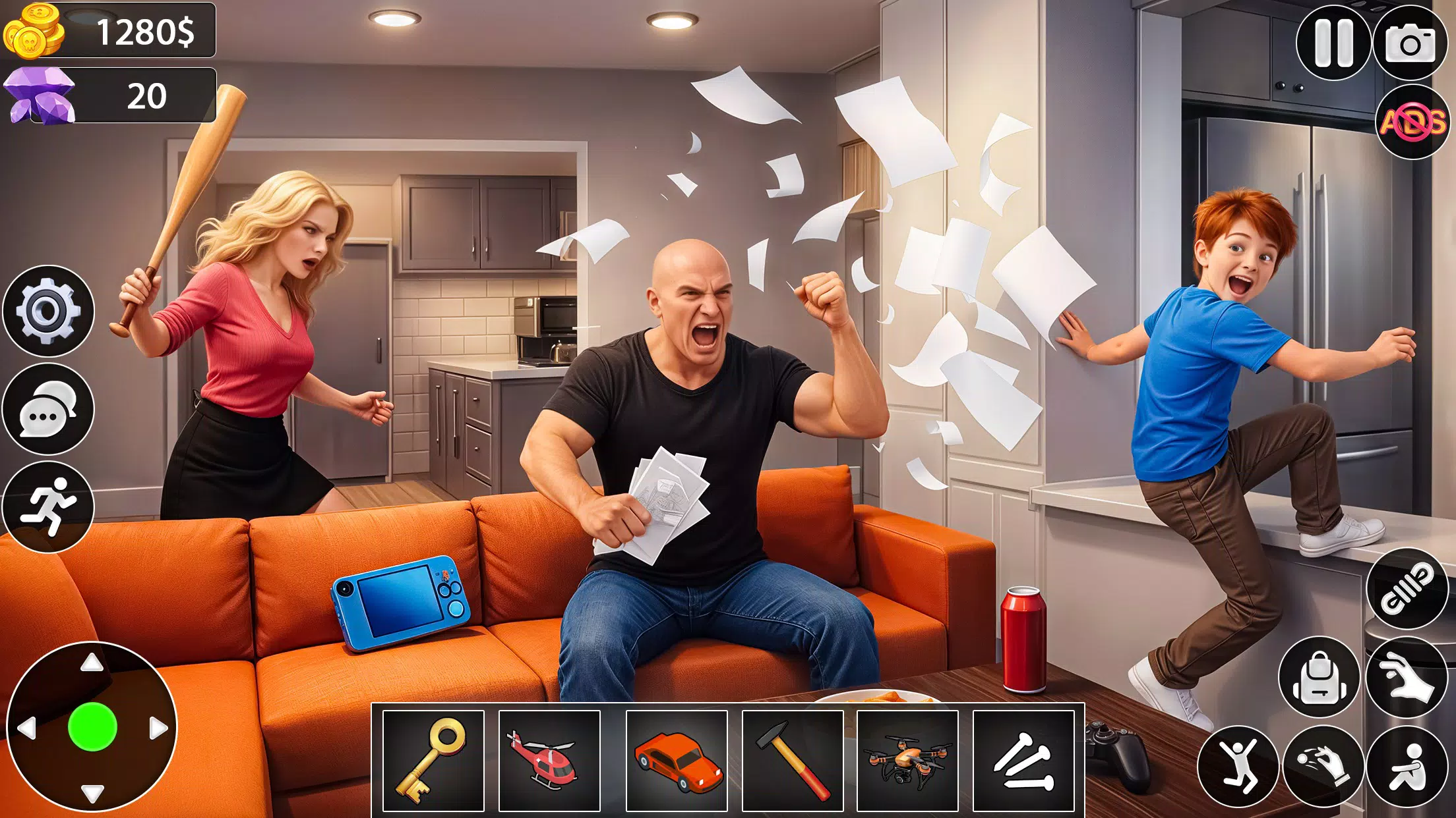 趣味恶作剧:你可以在逃跑的过程中捉弄家人!选择各种搞笑的恶作剧,找到逃脱的方法,避免被抓。