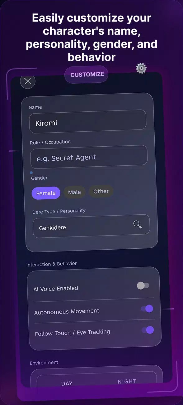 通过实时语音输入和精准的唇部动作,直接与你的虚拟朋友对话。最新的 Android 优化带来流畅的使用体验。