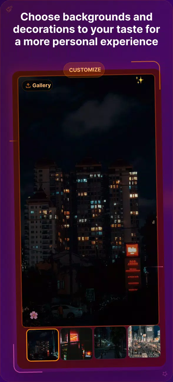 使用您自己的照片或视频自定义背景。用各种装饰品和特效装点大厅,为您的虚拟主播助理营造完美氛围。