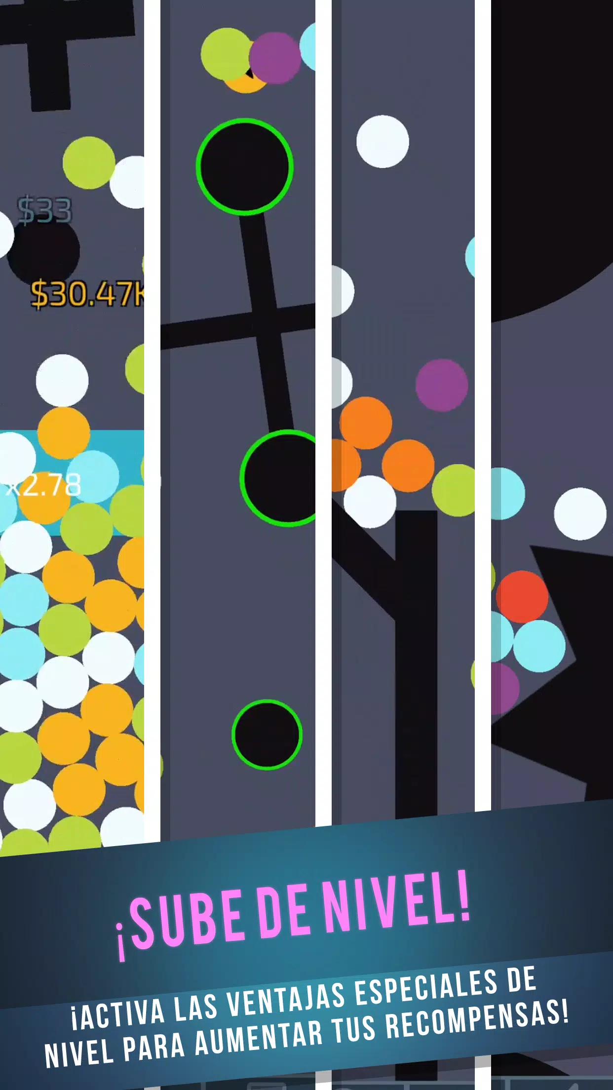 把一切都交给重力来完成!又或者,你也可以掌控全局,轻敲小球,让你的收入大幅增长。