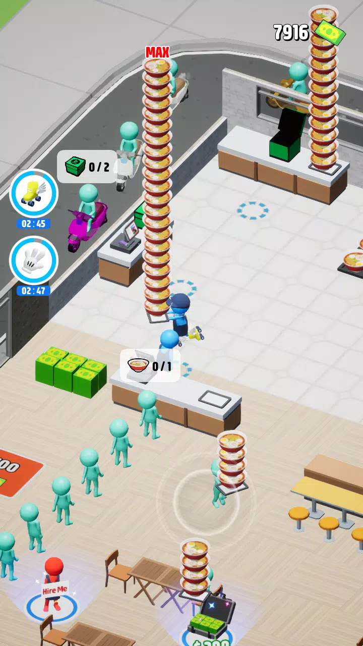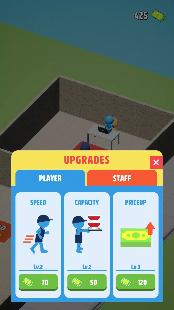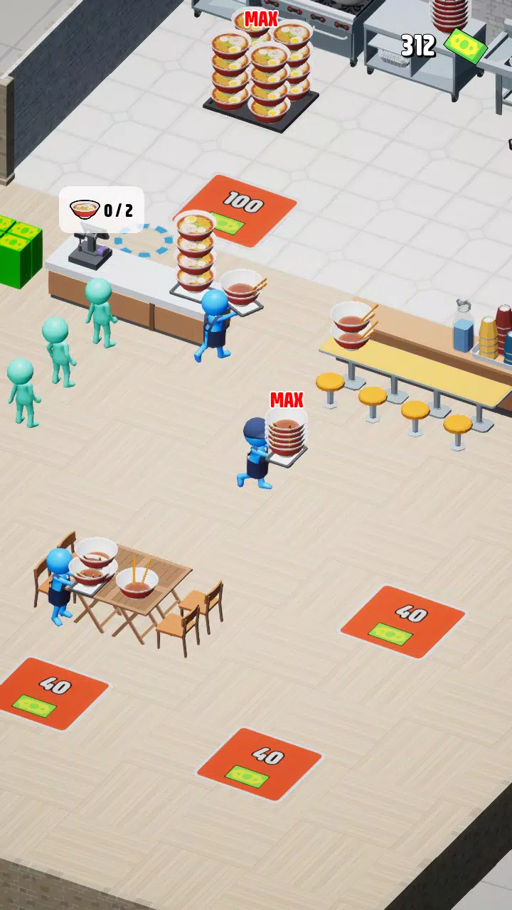花钱升级可以提升员工速度、一次能端多少碗,以及拉面制作速度!全面提升你的店铺效率。