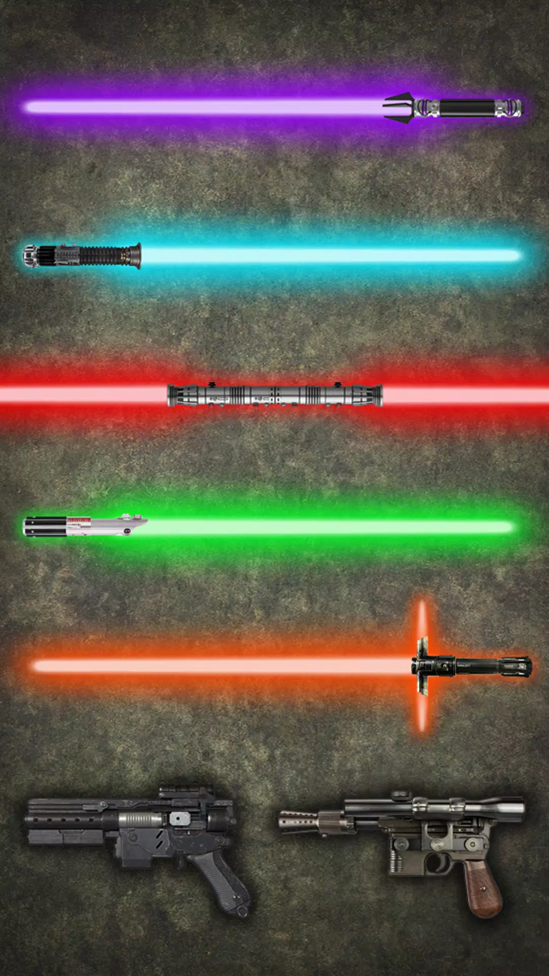 在模拟器的激光武器组,你会发现光剑和激光枪。 用你最喜欢的颜色自定义你的光剑,并从不同类型的手柄、暗面或力量中进行选择,并创建适合你风格的自定义武器。 只需轻按手柄,即可拔出或隐藏光剑,摇动设备时,您会听到其强大冲击力的声音。