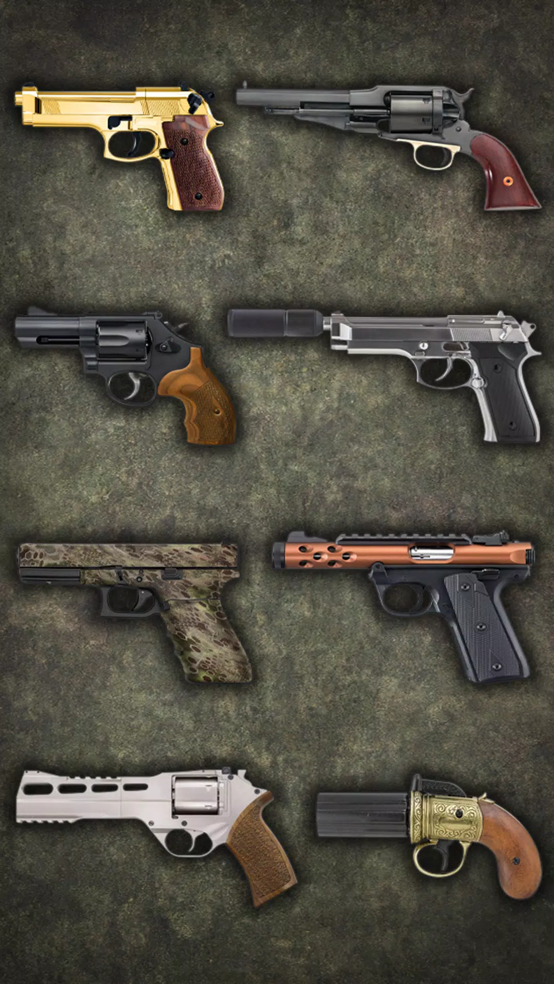 在枪支组中,您将有多种选择,包括自动武器、左轮手枪、消音枪、迷彩枪和老式枪,每一种都有自己独特的开火声。 要激活拍摄效果的振动、灯光和声音,您只需摇动您的设备即可。