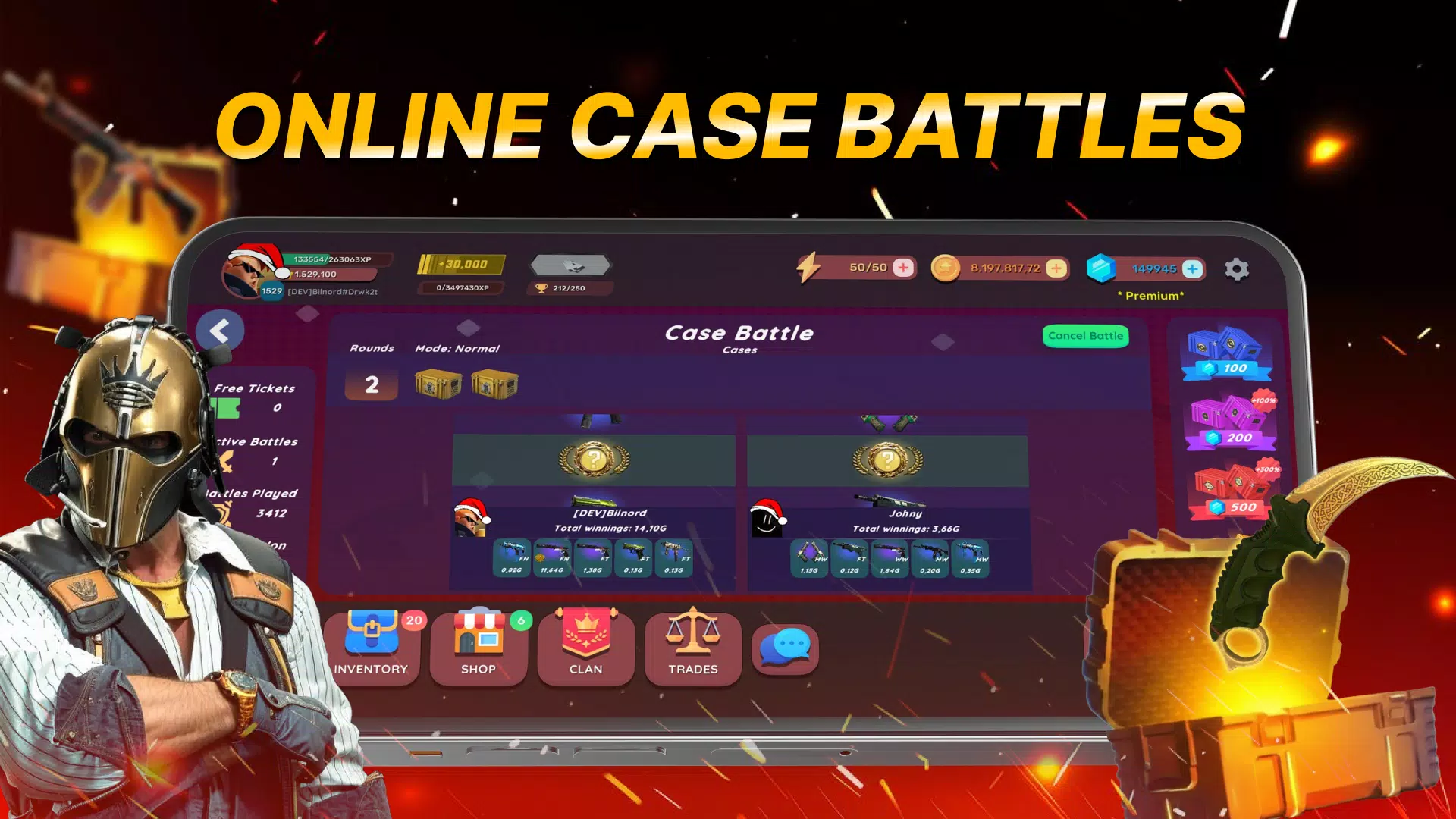 《开箱模拟器》是一款模拟游戏,玩家可以打开 CS2 箱子,收集稀有且昂贵的 CS:GO 皮肤,打造属于自己的宝库!使用点击器赚取金币,并用金币兑换箱子进行开箱。我们提供多种多人小游戏,可以与好友或全球玩家一起畅玩,让你绝不会感到无聊!无限刷刷刷!