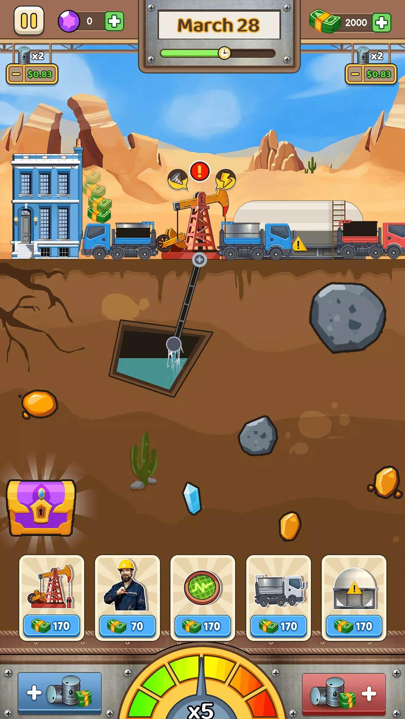 通过精准竞标获得开采权,派遣地质专家团队锁定储油层,架设高效钻井平台,构建输油管道网络。智能调配油罐车队,在全球能源市场中择机抛售,体验原油变黄金的财富快感!