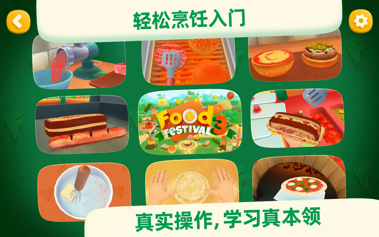 Food Festival 3 中的每一道食谱都源自真实的烹饪技术,并在专业厨师的帮助下进行儿童化改编。这不仅是一款美食游戏,更是一款 寓教于乐的烹饪学习应用,帮助孩子了解真实的厨房流程。