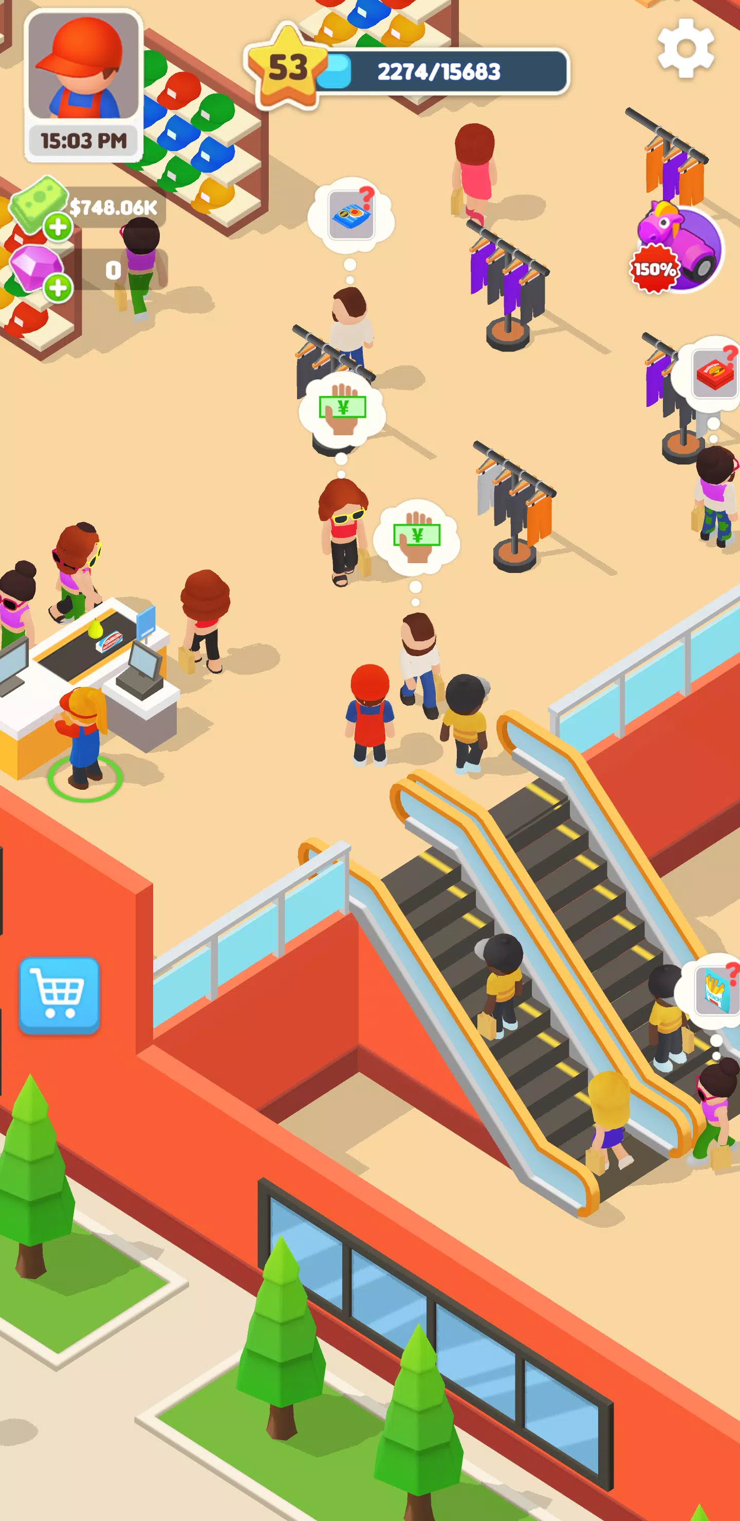 👔 招聘、培训并赚取闲置收入:组建一支技能精湛的团队,让您的市场高效运转。培训您的员工,提高工作效率,即使您离线也能获得收益。这是按照您自己的节奏建立商业帝国的完美方式。