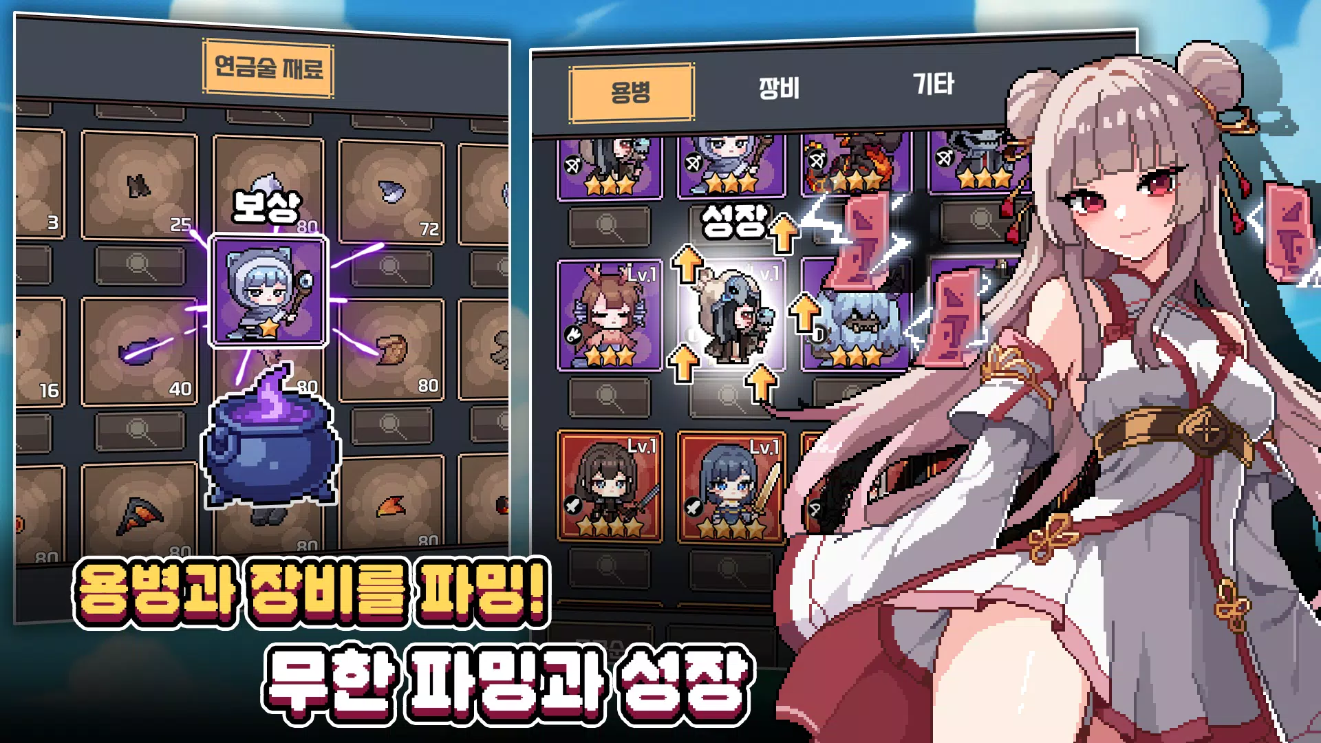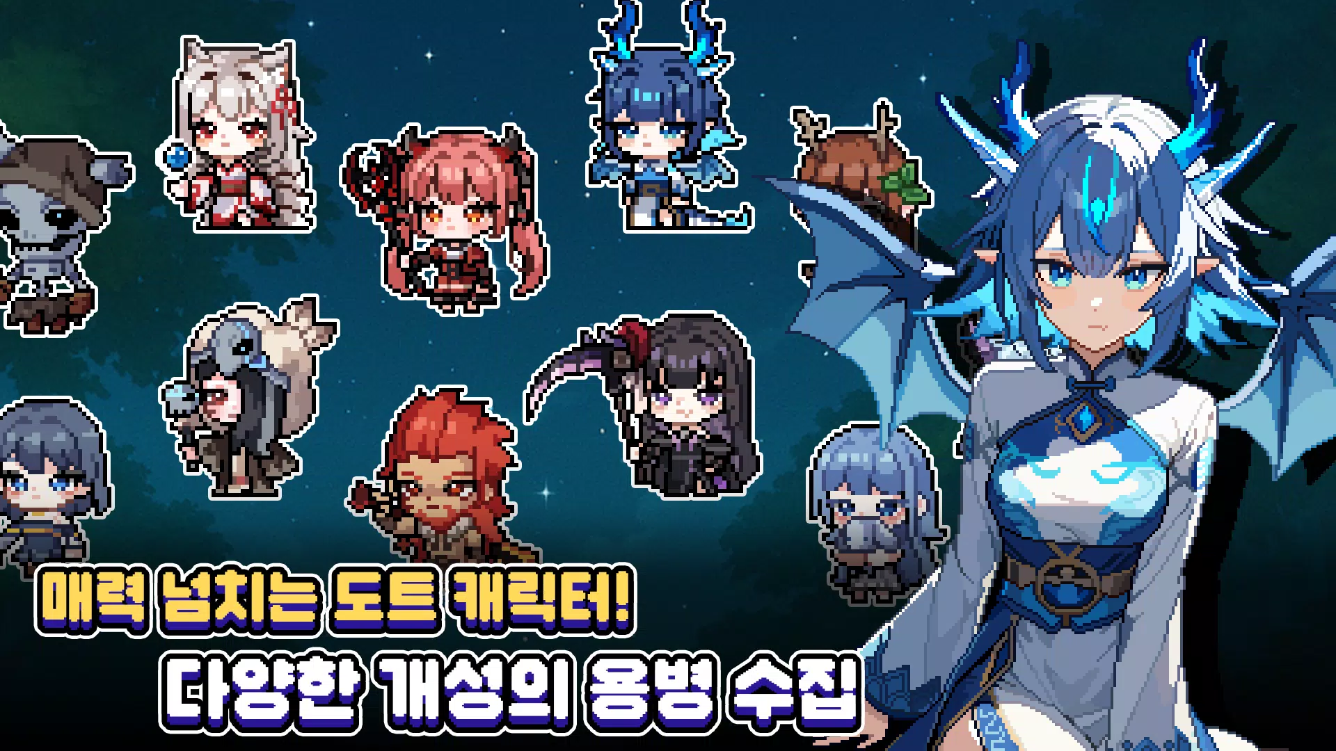 收集丰富多样、引人入胜的像素画佣兵。
