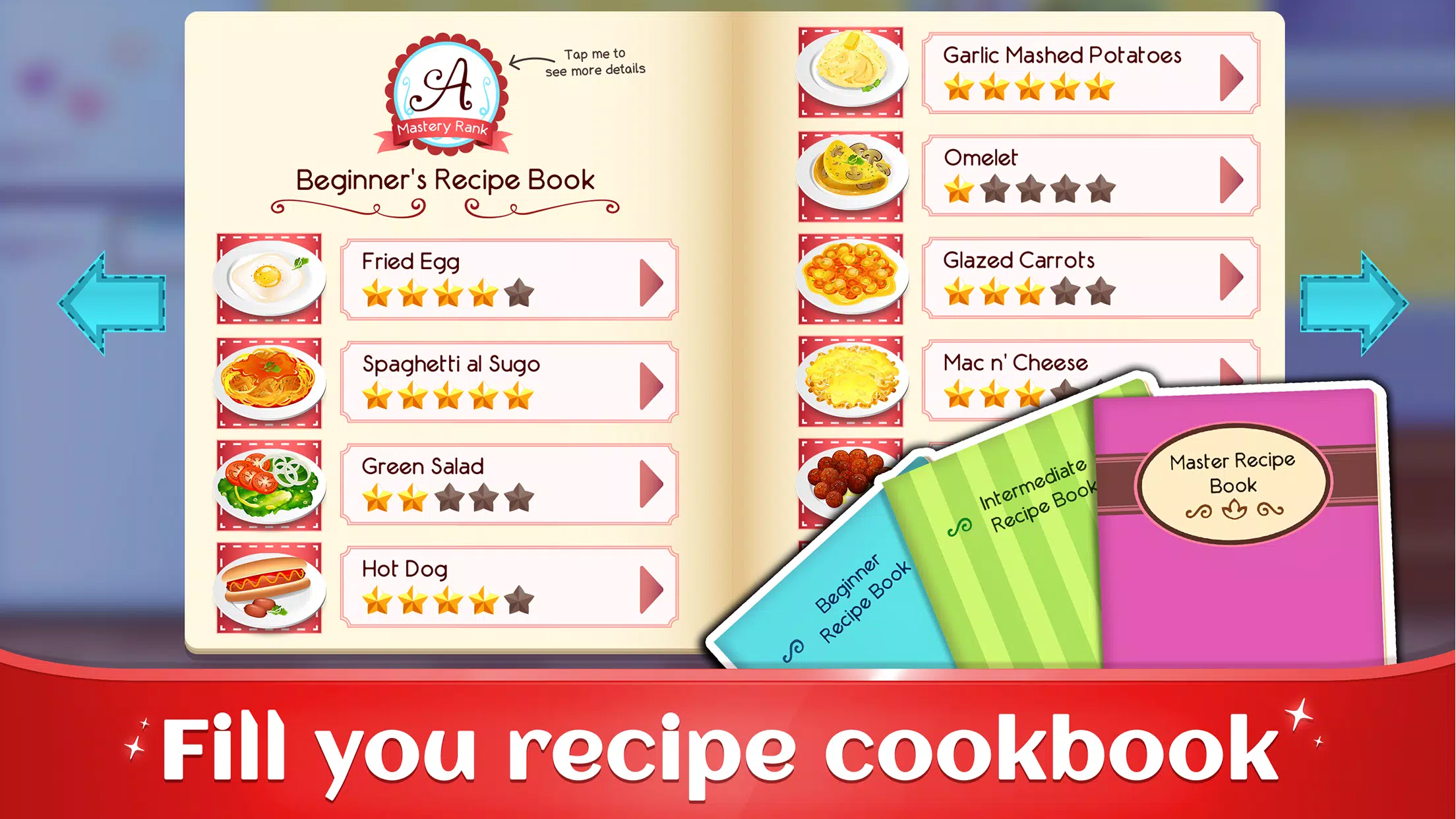 随着您获得的每一颗星星,随着您解锁新的食材和更多食谱,您的经验将变得更加专业。这款烹饪游戏中的食谱完全基于现实生活中的食谱,因此这是一个真正学习烹饪的绝佳机会!只需按照食谱操作,在享受乐趣的同时制作美食即可。